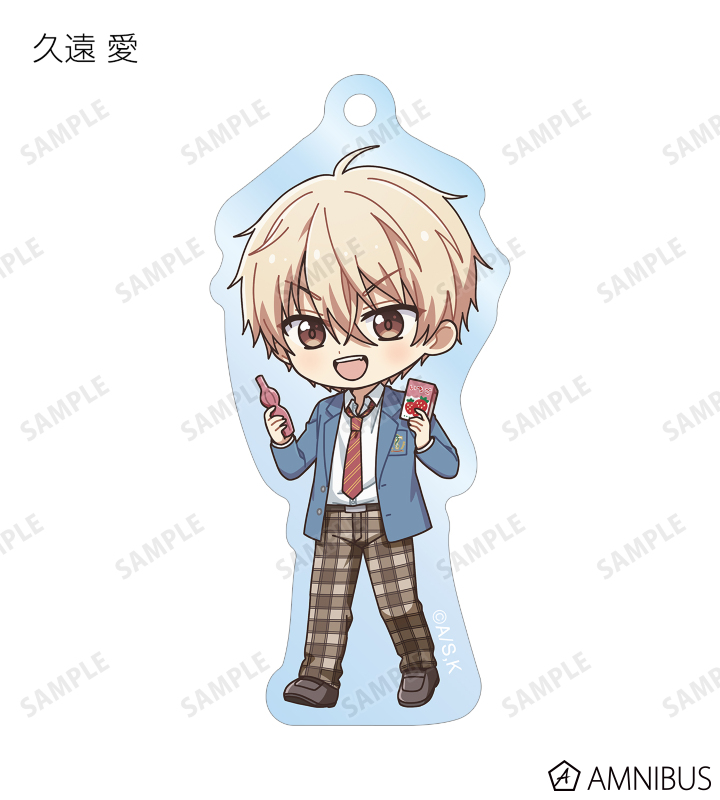 久遠 愛、倉田武蔵、鳳月さとわ、高岡哲生、足立実康、堺 通孝、水原光太、来栖妃呂、滝浪涼香、凰かずさ、花村 史、桐生桜介、神崎澪、堂島 晶、堂島 慧士の描き起こしちびキャライラストをメインにデザインし、アクリルキーホルダーに仕上げました。