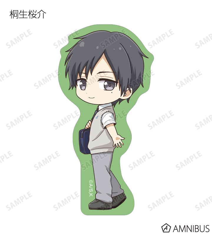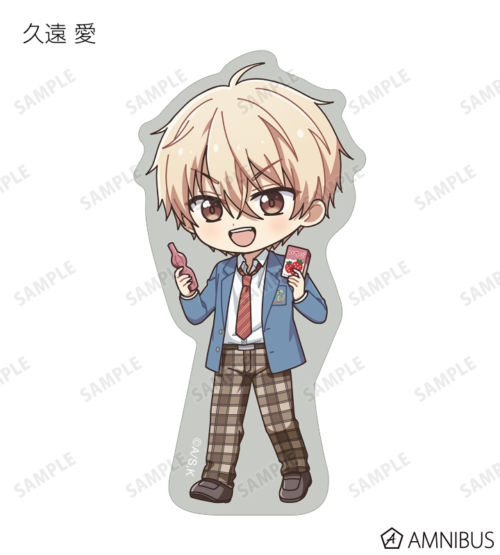 久遠 愛、倉田武蔵、鳳月さとわ、高岡哲生、足立実康、堺 通孝、水原光太、来栖妃呂、滝浪涼香、凰かずさ、花村 史、桐生桜介、神崎澪、堂島 晶、堂島 慧士の描き起こしちびキャライラストをメインにデザインし、ダイカットのステッカーに仕上げました。