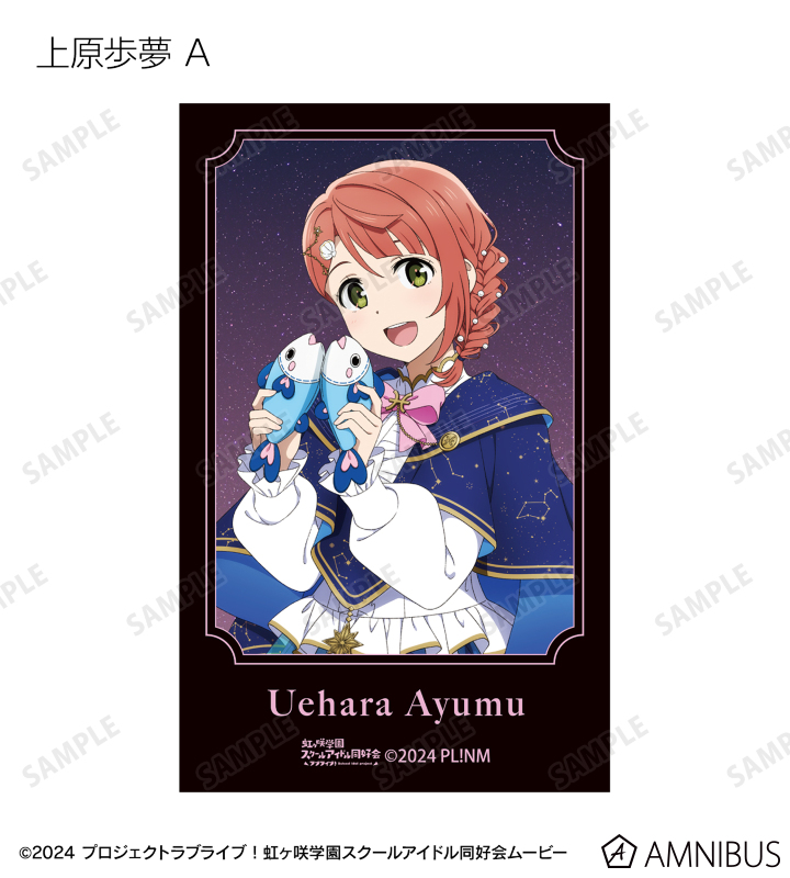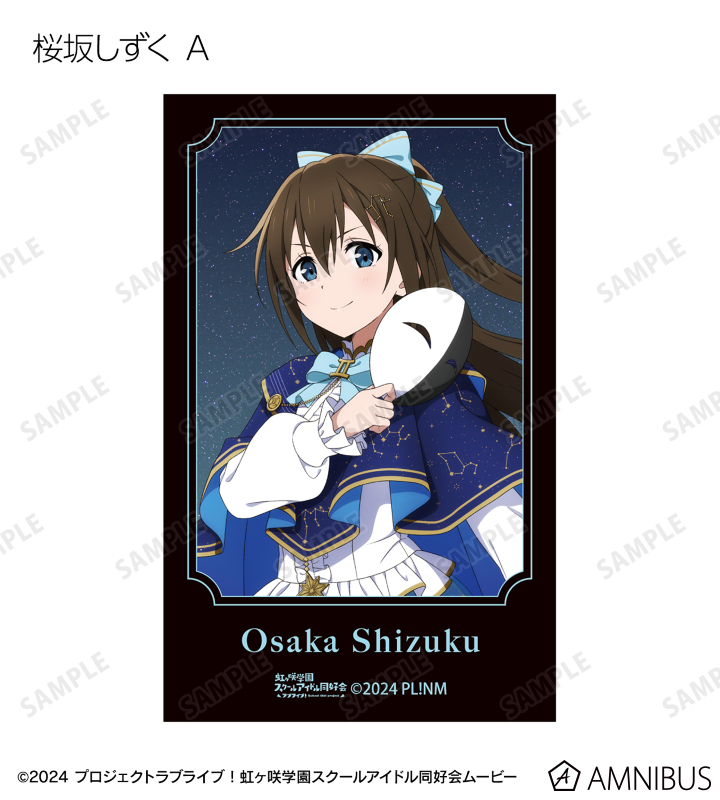 高咲 侑、上原歩夢、中須かすみ、桜坂しずく、朝香果林、宮下 愛、近江彼方、優木せつ菜、エマ・ヴェルデ、天王寺璃奈、三船栞子、ミア・テイラー、鐘 嵐珠の描き下ろしイラストをインスタントカメラ風のイラストカードに仕上げました。