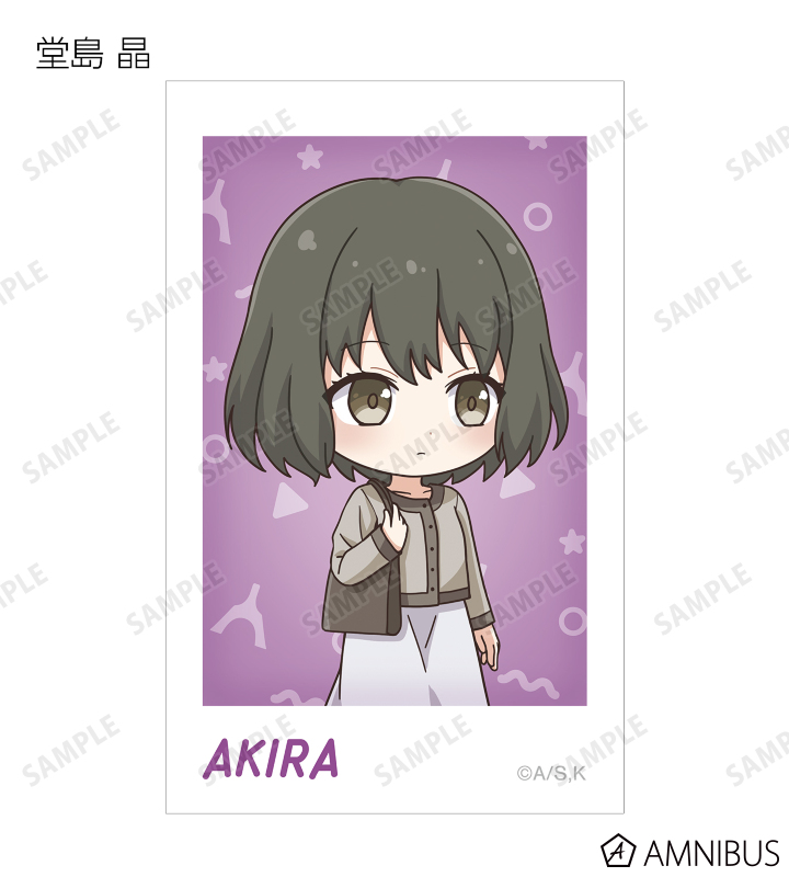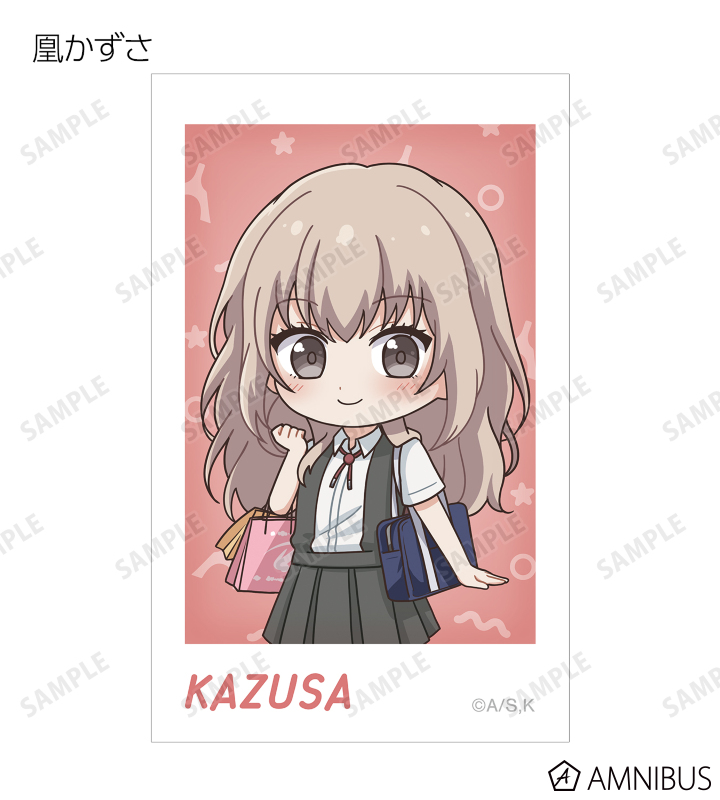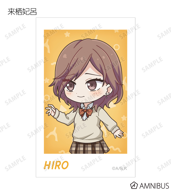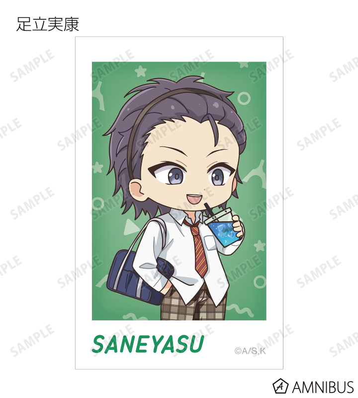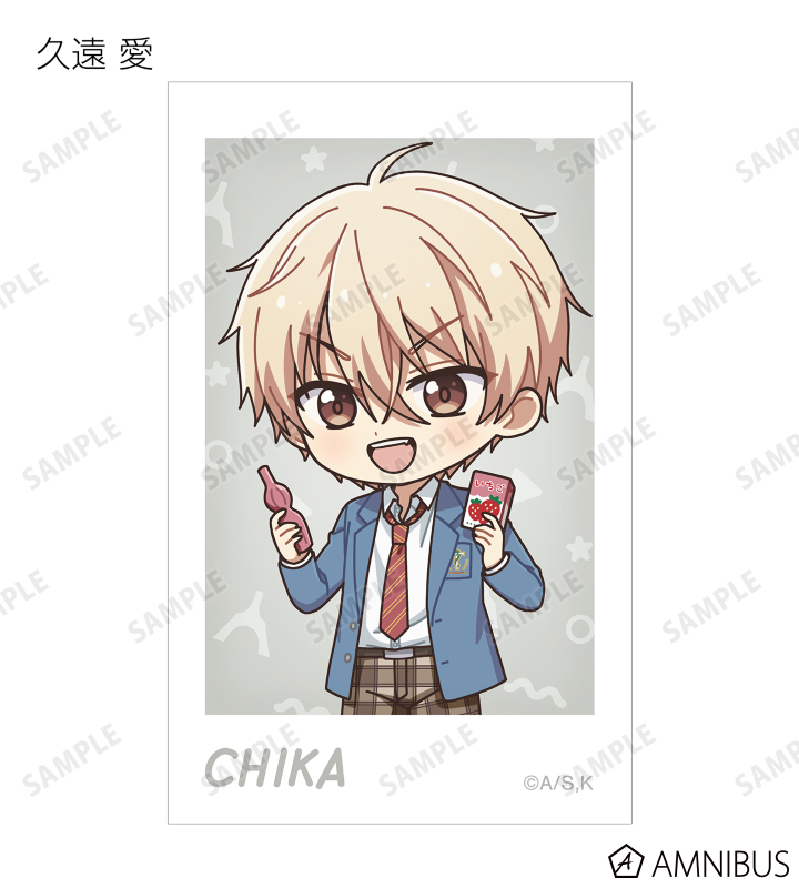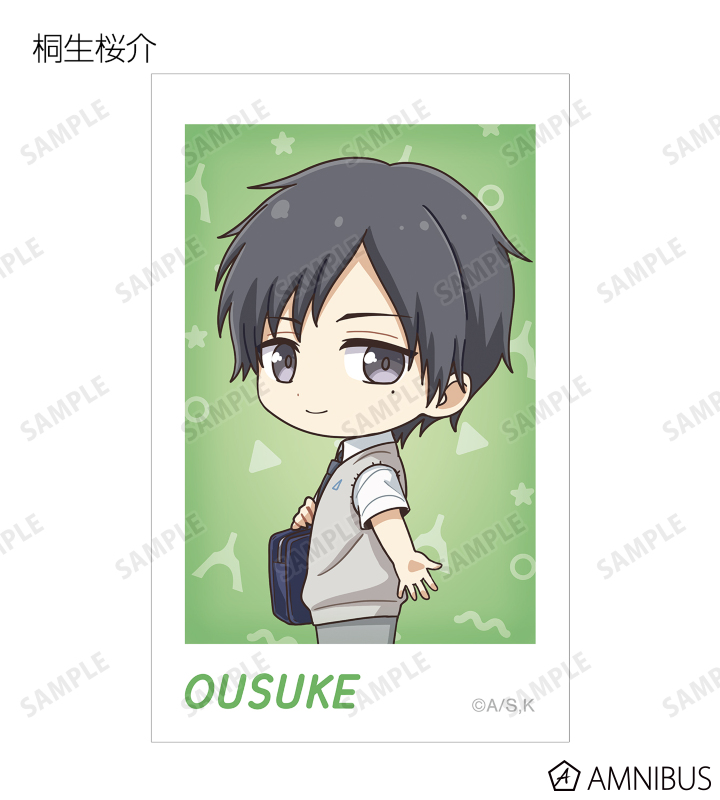 久遠 愛、倉田武蔵、鳳月さとわ、高岡哲生、足立実康、堺 通孝、水原光太、来栖妃呂、滝浪涼香、凰かずさ、花村 史、桐生桜介、神崎澪、堂島 晶、堂島 慧士の描き起こしちびキャライラストをメインにデザインし、インスタントカメラ風のイラストカードに仕上げました。