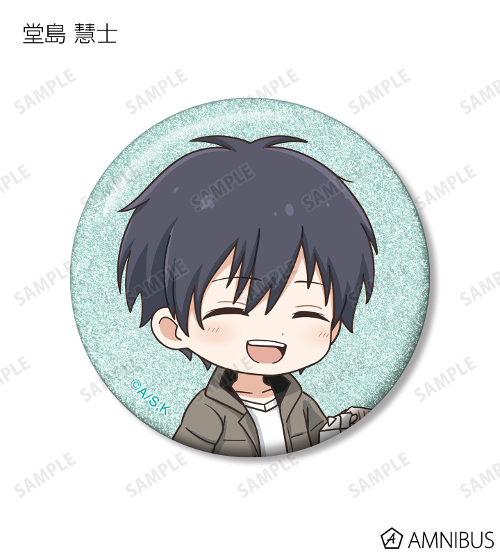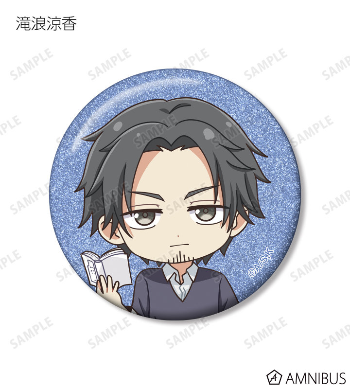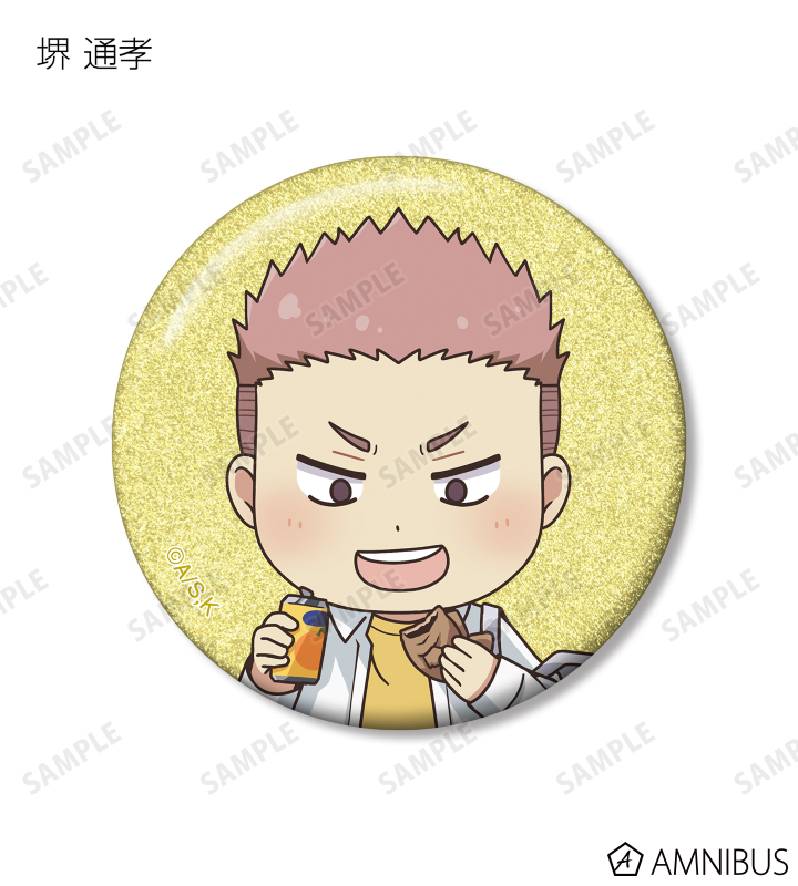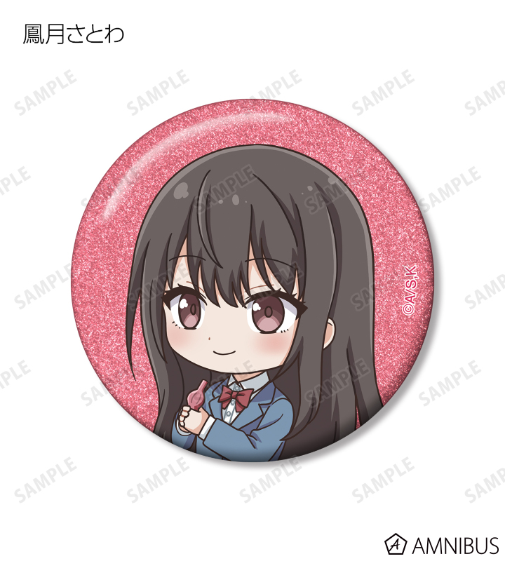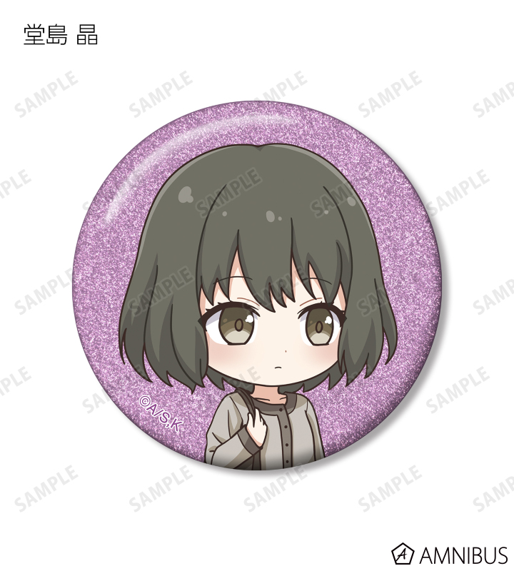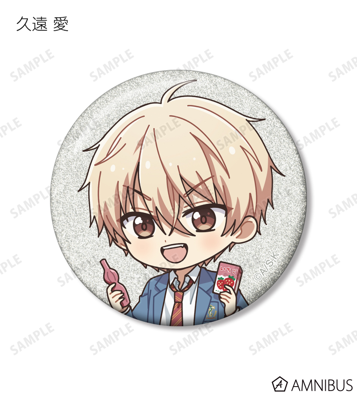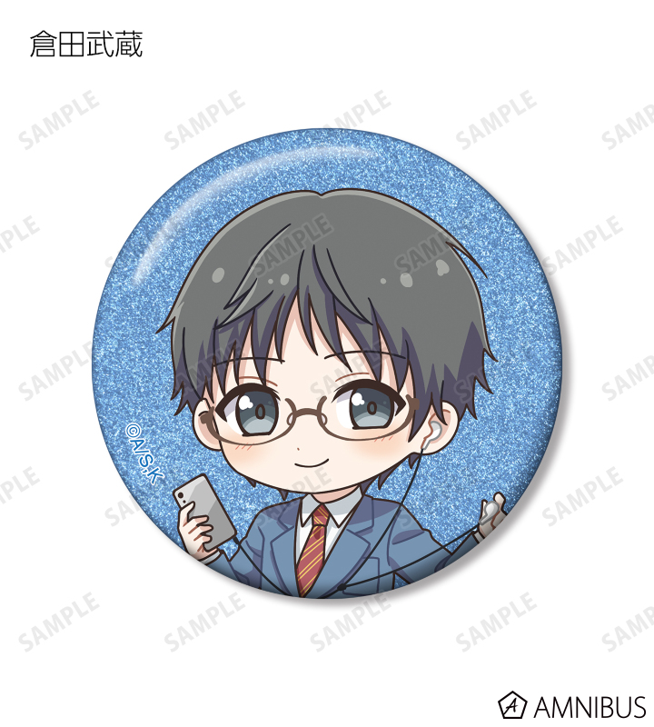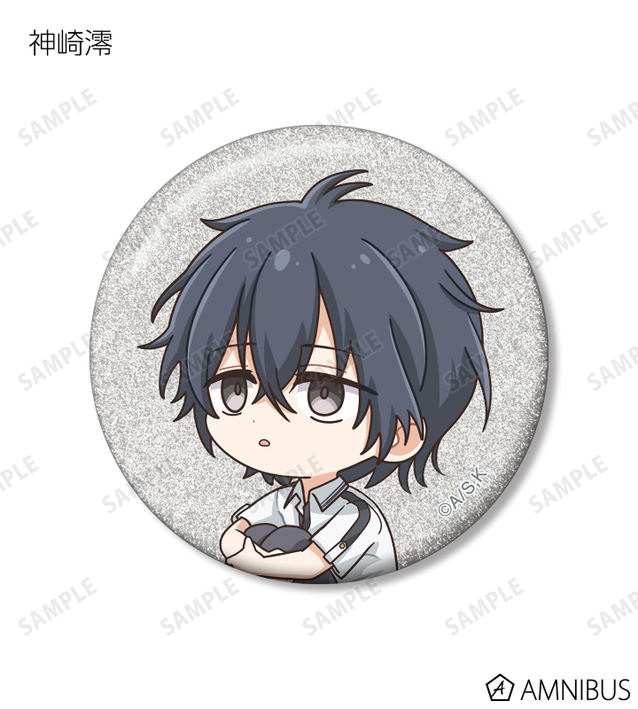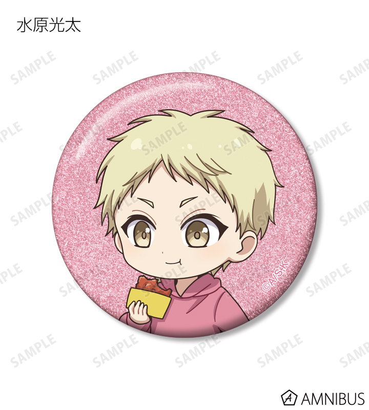 久遠 愛、倉田武蔵、鳳月さとわ、高岡哲生、足立実康、堺 通孝、水原光太、来栖妃呂、滝浪涼香、凰かずさ、花村 史、桐生桜介、神崎澪、堂島 晶、堂島 慧士の描き起こしちびキャライラストをメインにデザインし、グリッター加工を施した缶バッジに仕上げました。