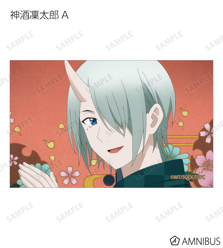 安倍晴明、佐野 命、狸塚豆吉、泥田耕太郎、座敷紅子、入道連助、神酒凜太郎、秦中飯綱、学園長、たかはし明、たかはし暗の印象的なシーンをイラストカード2枚セットに仕上げました。