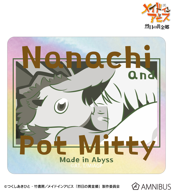 『メイドインアビス 烈日の黄金郷』から日常で使える統一感をテーマにしたデザインシリーズ「ar-Unity」のアイテム「ナナチ&壺ミーティ ar-Unity オーロラダイカットステッカー」の登場です。