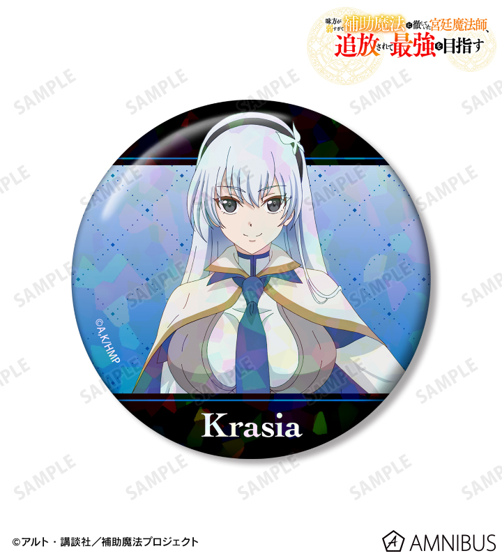 TVアニメ『味方が弱すぎて補助魔法に徹していた宮廷魔法師、追放されて最強を目指す』より、75mmホログラム缶バッジの登場です。