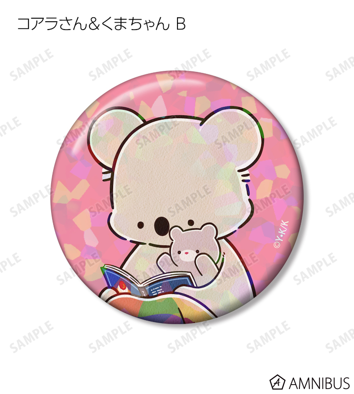 コアラさん、くまちゃんのイラストをホログラム加工を施した缶バッジに仕上げました。