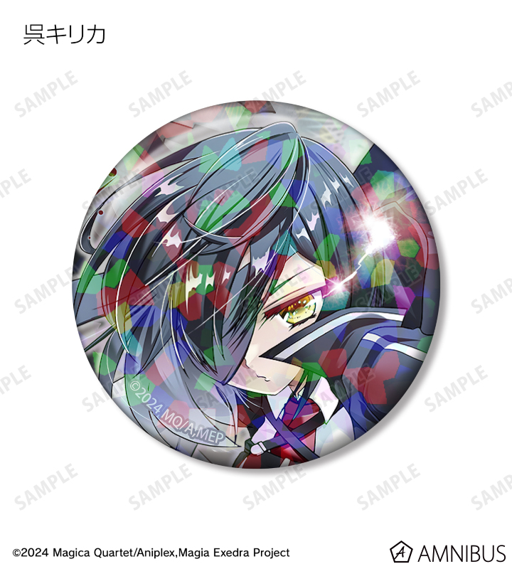 鹿目まどか、暁美ほむら、美国織莉子、呉キリカ、五十鈴れん、天音月夜、天音月咲、愛生まばゆ、里見灯花、柊ねむ、アリナ・グレイのキオクイラストをホログラム加工を施した缶バッジに仕上げました。
