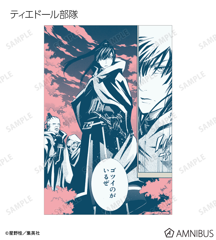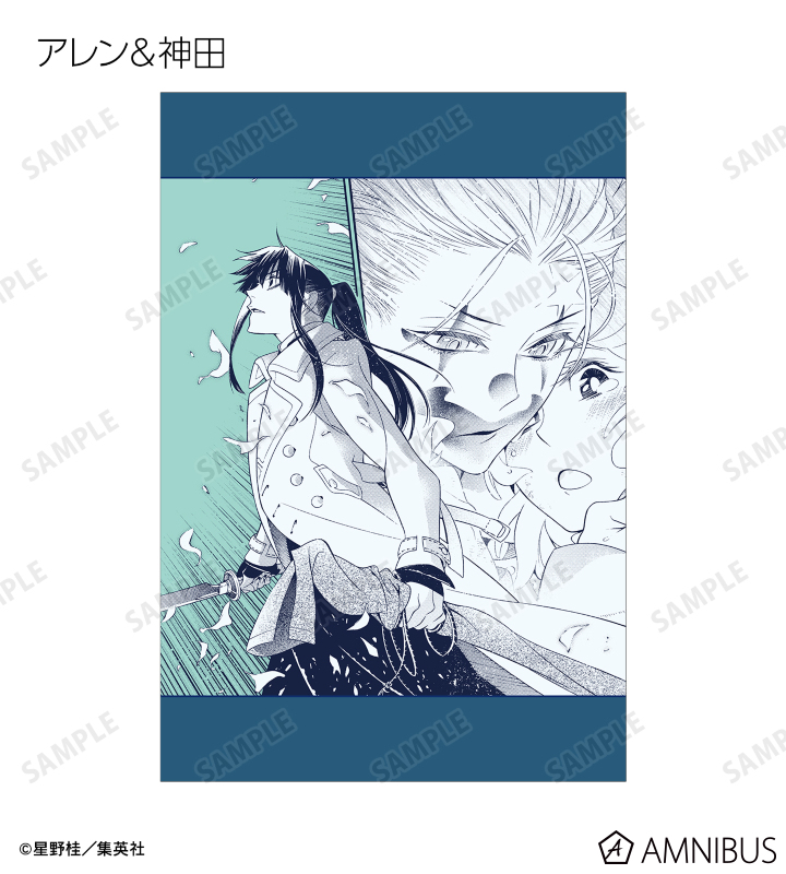 アレン・ウォーカー、ティムキャンピー、神田ユウ、ラビ、ティエドール部隊、リナリー・リー、ミランダ・ロットー、クロス・マリアン、ハワード・リンク、ティキ・ミック、シェリル・キャメロット、ロード・キャメロット、ジャスデビ、ゴーレムの原作コマイラスト、カラーイラストをポストカードに仕上げました。