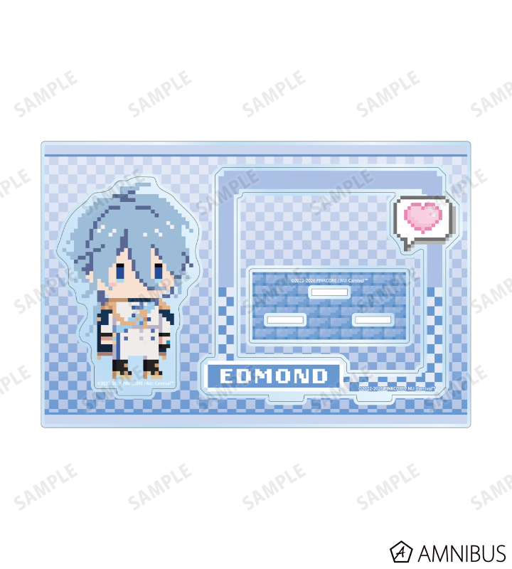 エドモンドの描き起こしドット風ちびキャライラストをメインにデザインし、パーツ付きのBIGなアクリルスタンドに仕上げました。