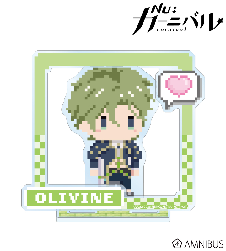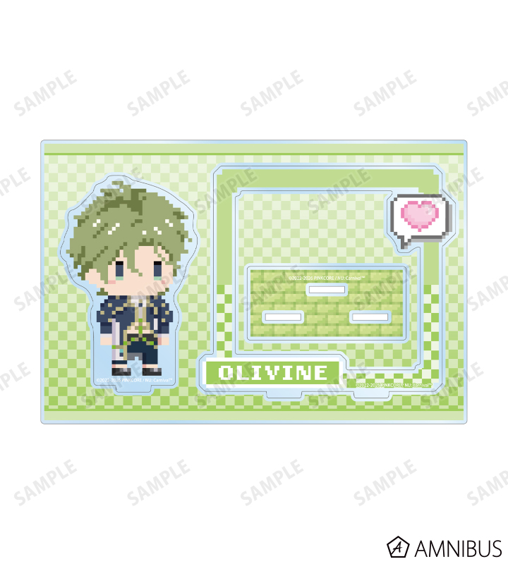 オリビンの描き起こしドット風ちびキャライラストをメインにデザインし、パーツ付きのBIGなアクリルスタンドに仕上げました。