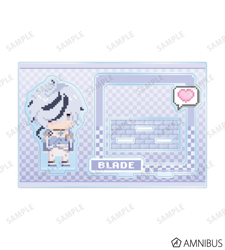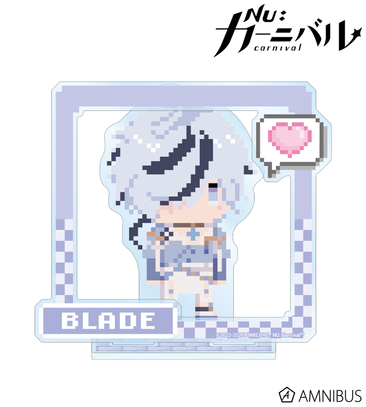 ブレイドの描き起こしドット風ちびキャライラストをメインにデザインし、パーツ付きのBIGなアクリルスタンドに仕上げました。