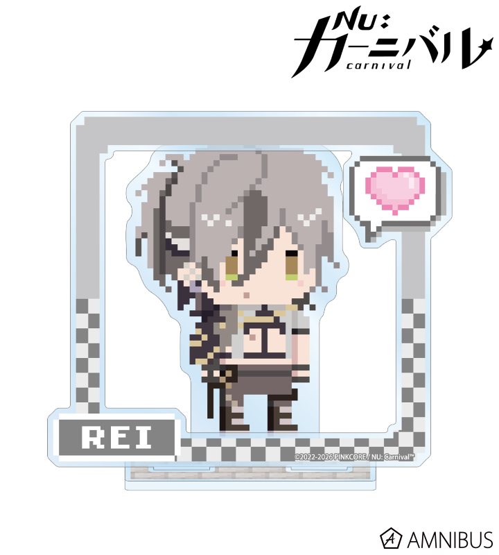 レイの描き起こしドット風ちびキャライラストをメインにデザインし、パーツ付きのBIGなアクリルスタンドに仕上げました。