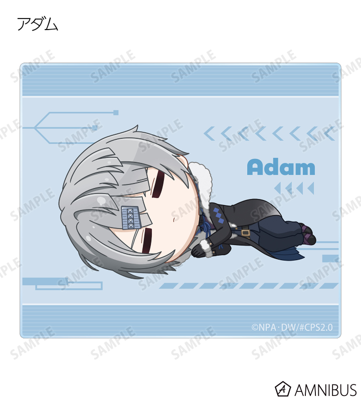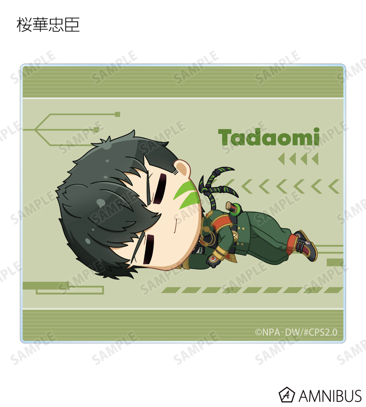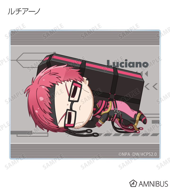 13(サーティーン)、零夜、ジャンヌ、Voidoll、十文字アタリ、桜華忠臣、ルチアーノ、深川まとい、マリア、アダム、狐ヶ咲甘色がころんと寝ているちびキャラを新たに描き起こし、アクリルカードに仕上げました。