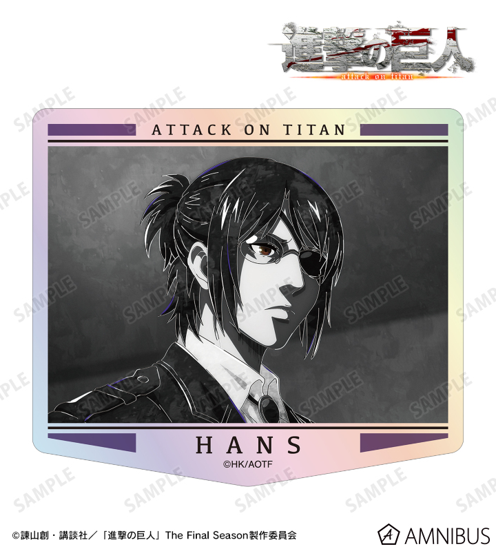 ハンジのイラストを新たなタッチで魅力的に表現し、オーロラダイカットステッカーに仕上げました。