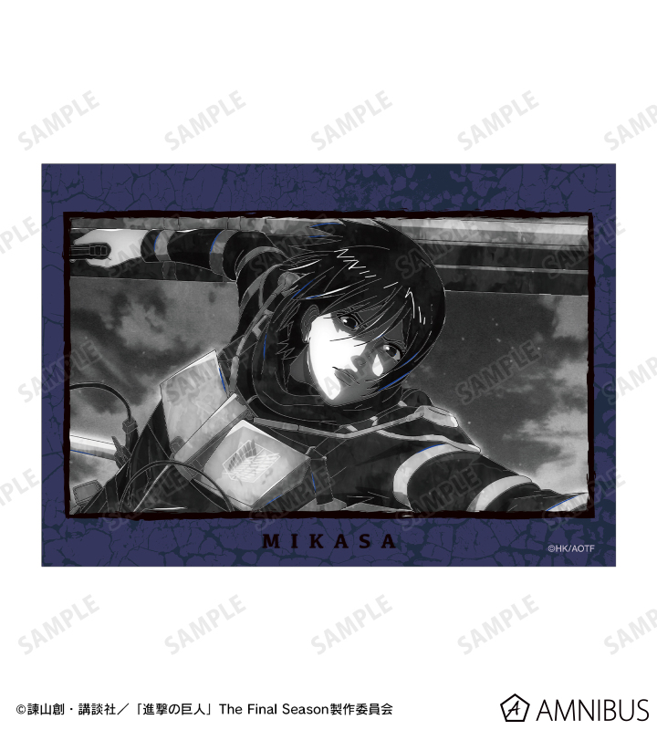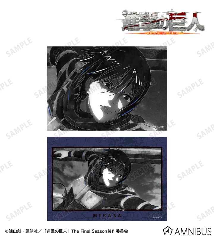 ミカサのイラストを新たなタッチで魅力的に表現し、ブロマイド2枚セットに仕上げました。