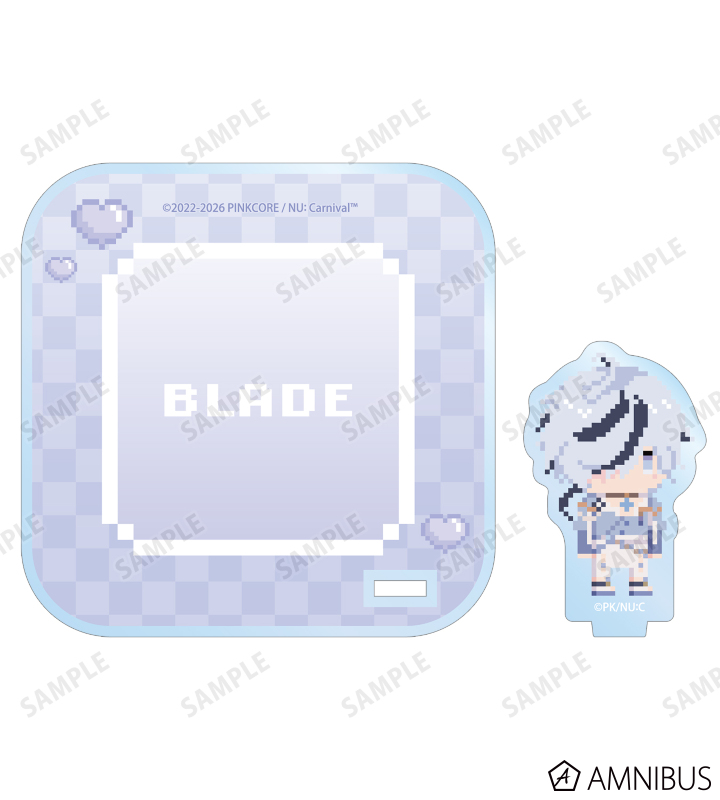 ブレイドの描き起こしドット風ちびキャライラストをメインにデザインし、アクリルスタンド付きコースターに仕上げました。