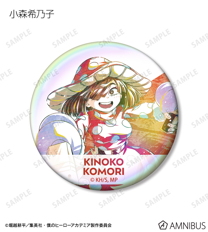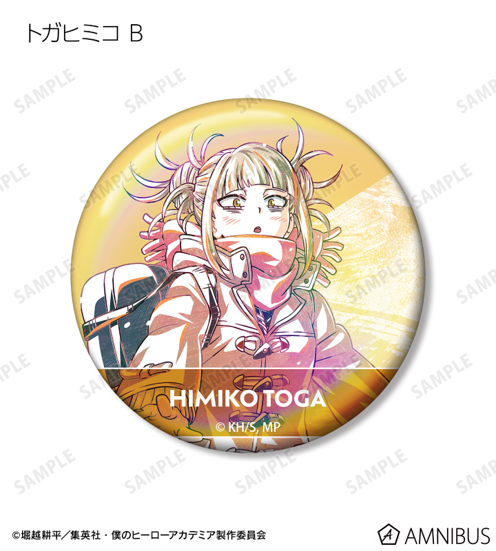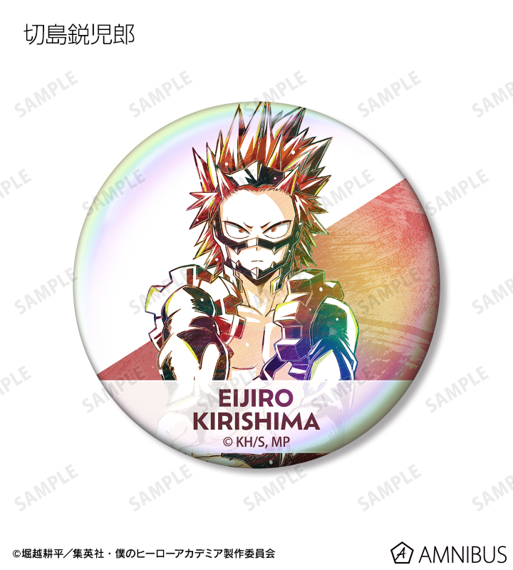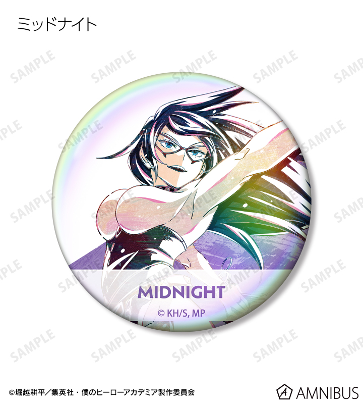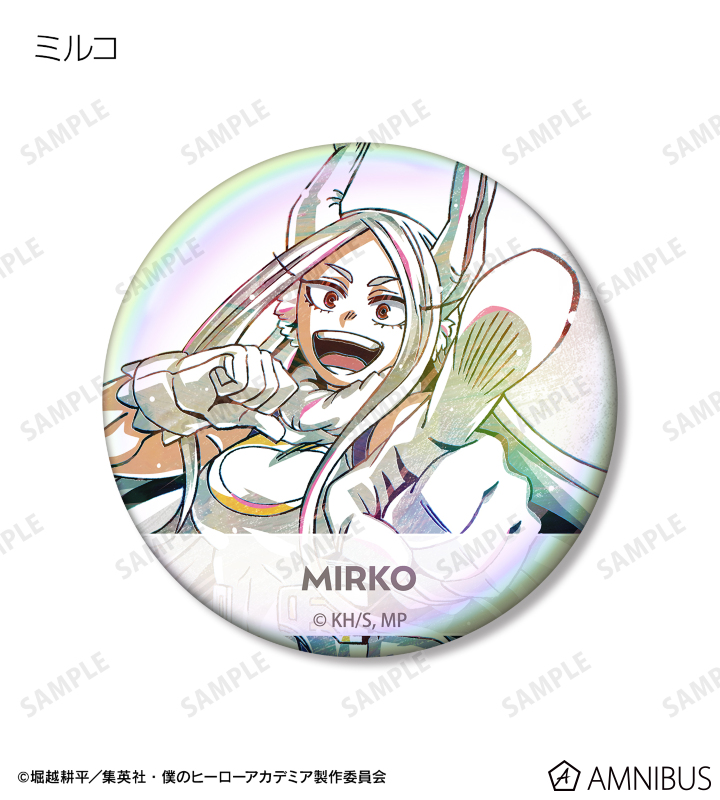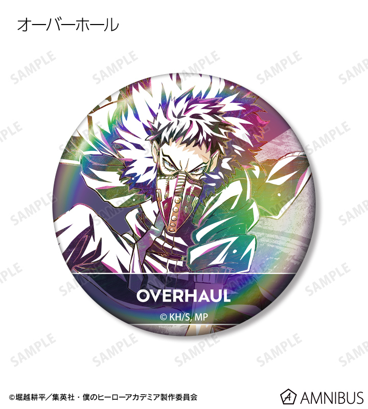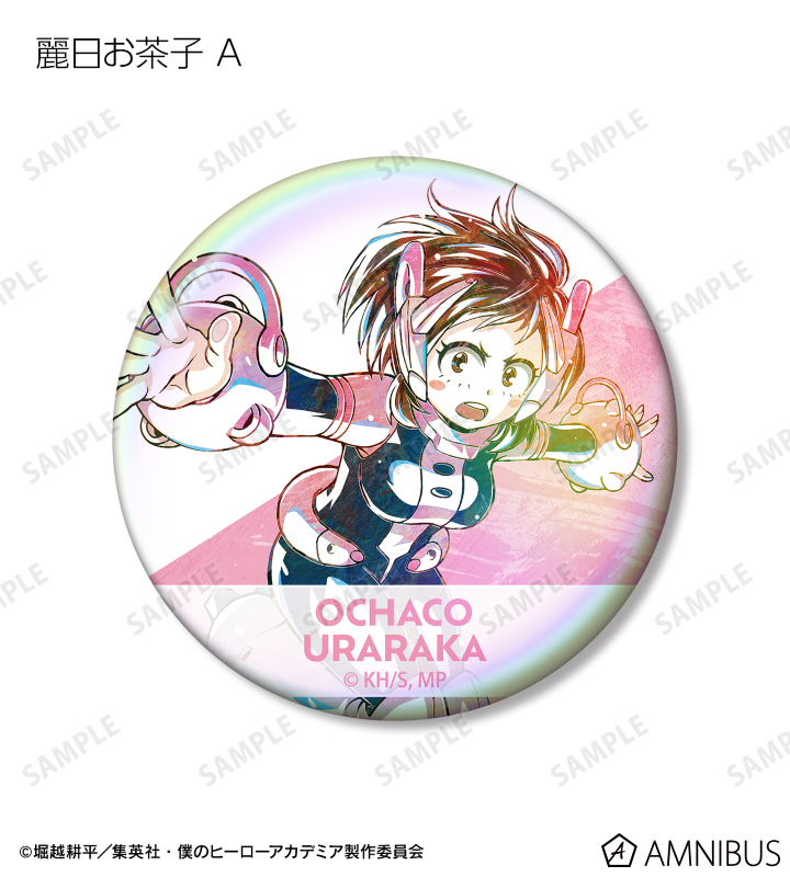 麗日お茶子、切島鋭児郎、小森希乃子、ミッドナイト、ホークス、ミルコ、トガヒミコ、オーバーホール、外典のビジュアルを新たなタッチで魅力的に表現し、オーロラ加工を施した缶バッジに仕上げました。