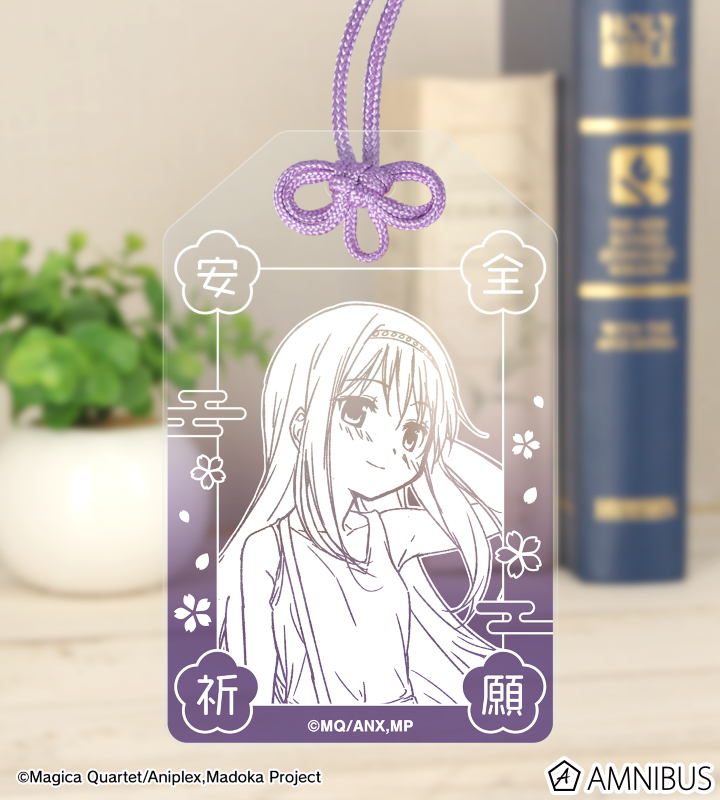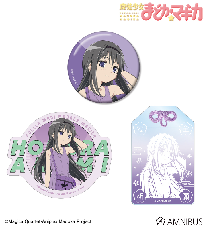 暁美ほむらの描き下ろしイラストを、アクリルお守り、缶バッジ、ステッカーの3点セットにまとめ、キャラクターの魅力あふれる、ジッパー付きの袋に入った、プレゼントやお土産にも使えるセットに仕上げました。