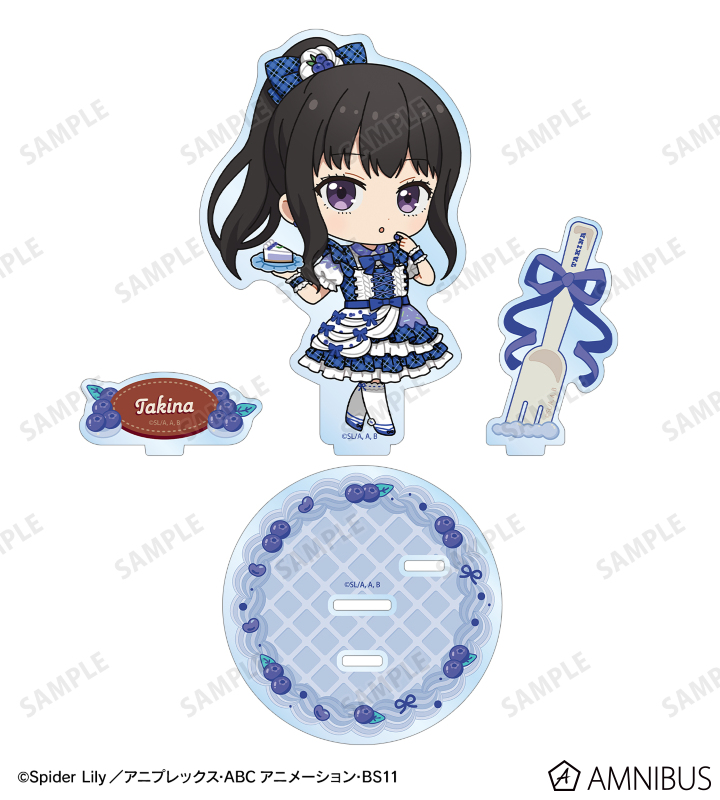 井ノ上たきなの描き起こしちびキャライラストをメインにデザインし、パーツ付きのBIGなアクリルスタンドに仕上げました。