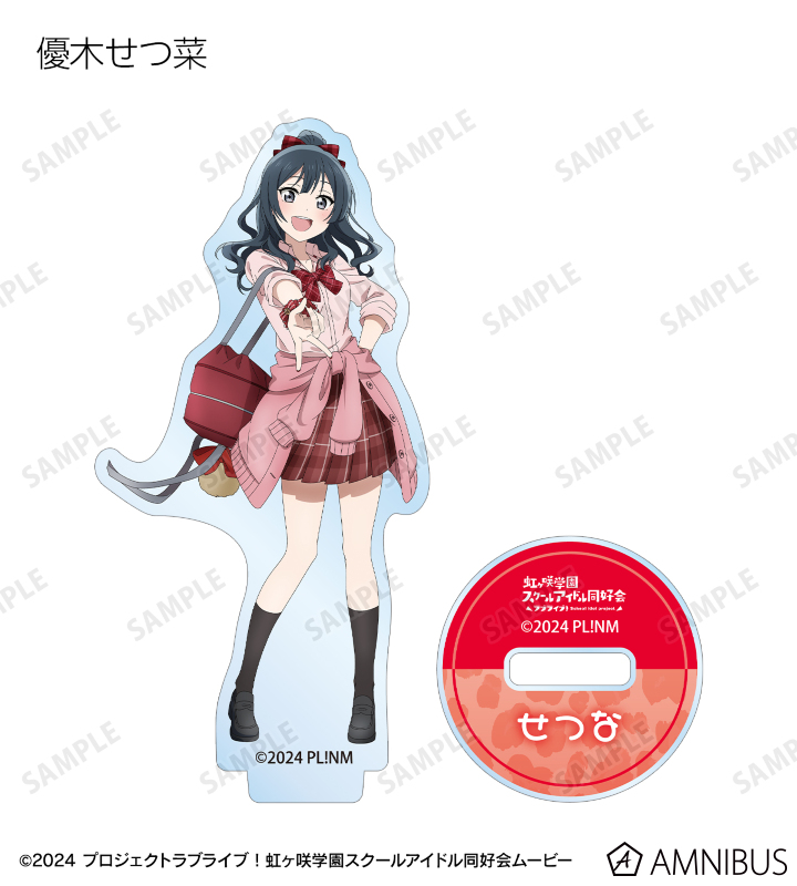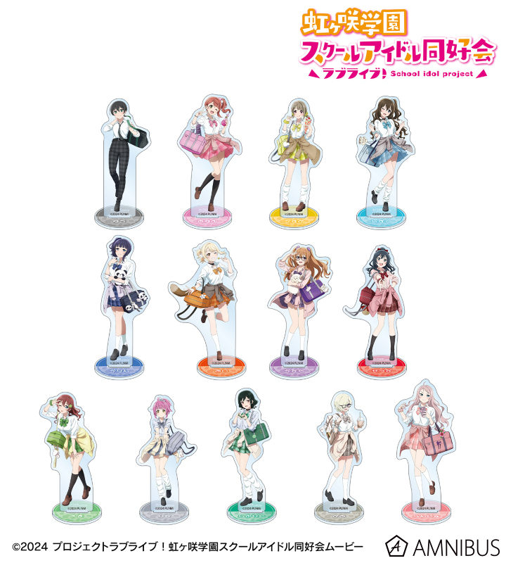 高咲 侑、上原歩夢、中須かすみ、桜坂しずく、朝香果林、宮下 愛、近江彼方、優木せつ菜、エマ・ヴェルデ、天王寺璃奈、三船栞子、ミア・テイラー、鐘 嵐珠の描き下ろしイラストをアクリルスタンドに仕上げました。