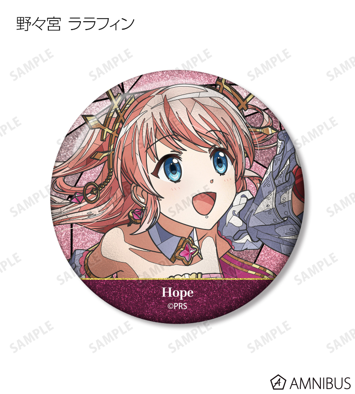 愛城 華恋、大場 なな、西條 クロディーヌ、石動 双葉、巴 珠緒、音無 いちえ、野々宮 ララフィン、恵比寿 つかさ、胡蝶 静羽、鳳 ミチル、リュウ・メイファン、夢大路 栞、西野 えるのイラストを新たなタッチで魅力的に表現し、グリッター加工を施した缶バッジに仕上げました。