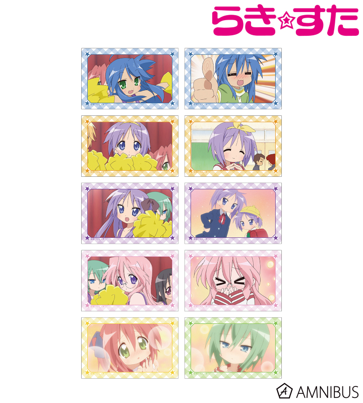 泉こなた、柊つかさ、柊かがみ、高良みゆき、小早川ゆたか、岩崎みなみの印象的なシーンをイラストカードに仕上げました。