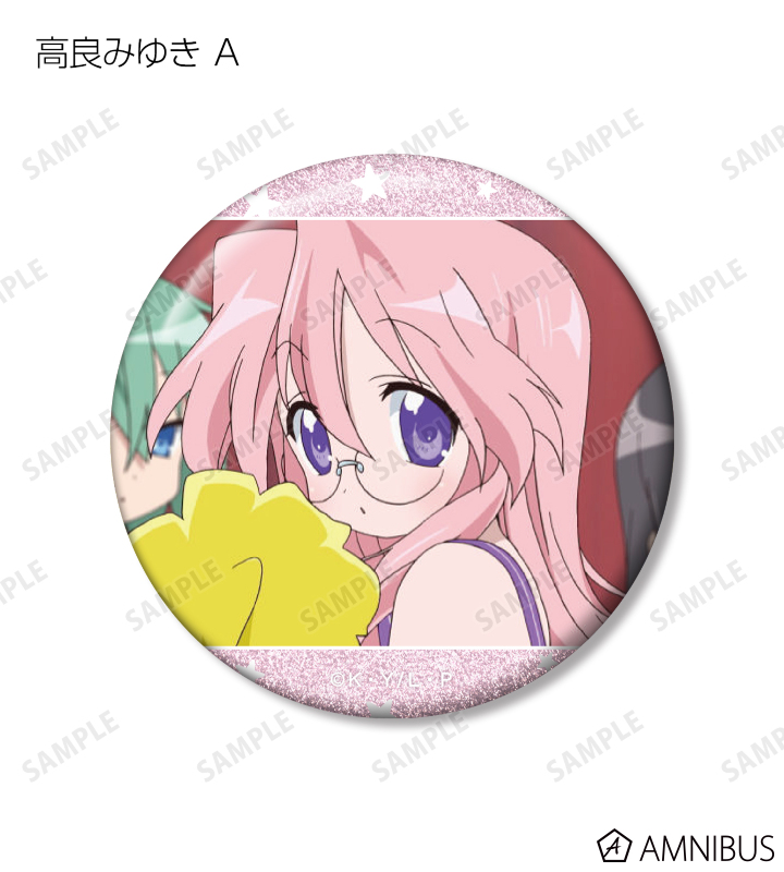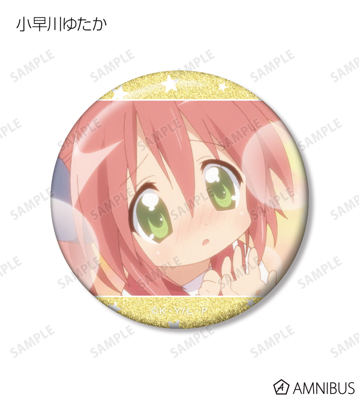 泉こなた、柊つかさ、柊かがみ、高良みゆき、小早川ゆたか、岩崎みなみの印象的なシーンをグリッター加工を施した缶バッジに仕上げました。