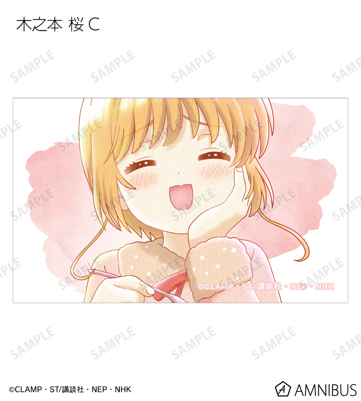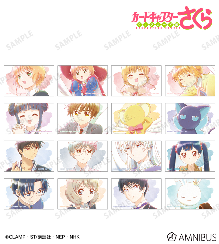 木之本 桜、大道寺 知世、李 小狼、ケロちゃん、スッピー、木之本 桃矢、月城 雪兎、月(ユエ)、李 苺鈴、柊沢 エリオル、詩之本 秋穂、ユナ・D・海渡、モモのイラストを新たなタッチで魅力的に表現し、クリアカードに仕上げました。