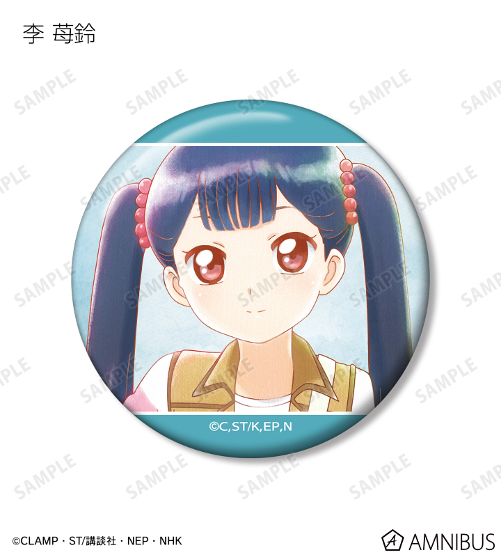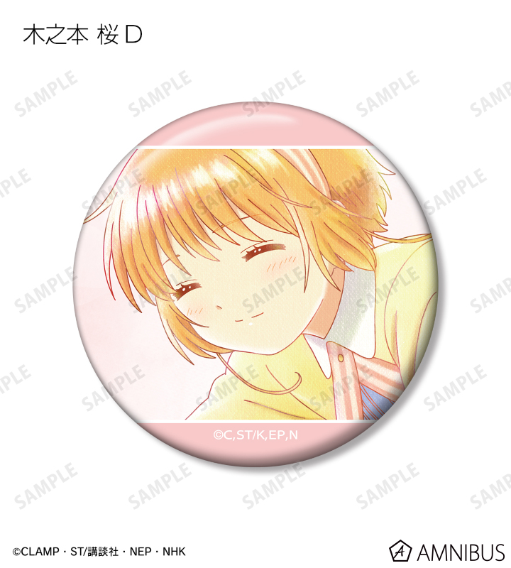 木之本 桜、大道寺 知世、李 小狼、ケロちゃん、スッピー、木之本 桃矢、月城 雪兎、月(ユエ)、李 苺鈴、柊沢 エリオル、詩之本 秋穂、ユナ・D・海渡、モモのイラストを新たなタッチで魅力的に表現し、缶バッジに仕上げました。