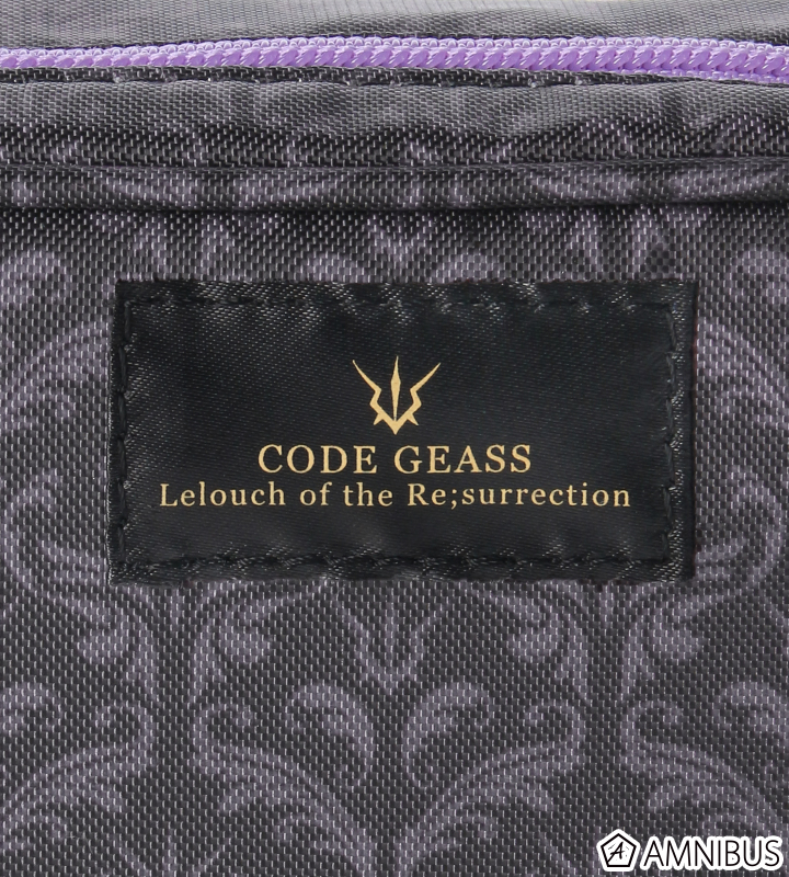 ギアスマークをベースに組み合わせた模様の総柄デザインに、作品タイトルをプリントしたタグを施しています。
