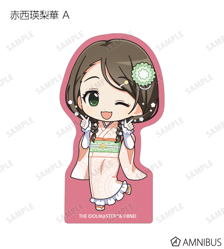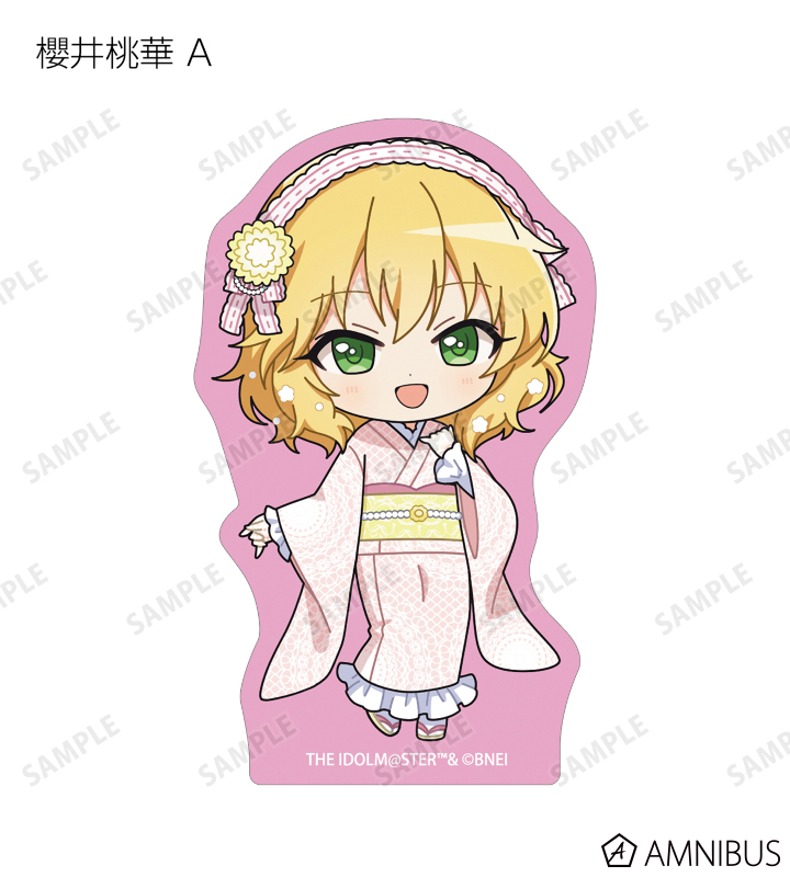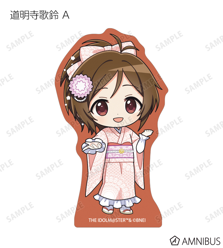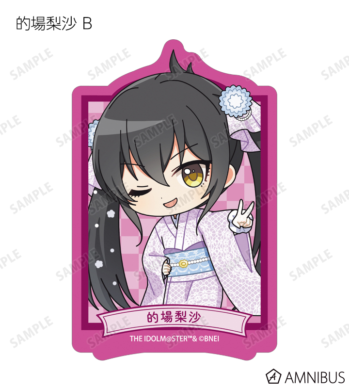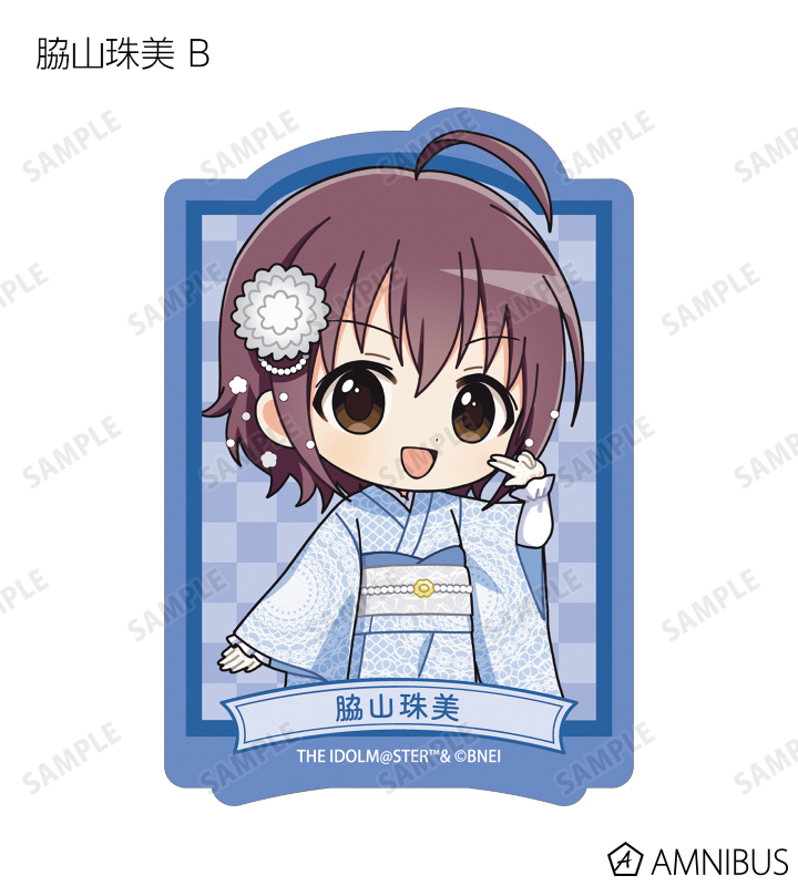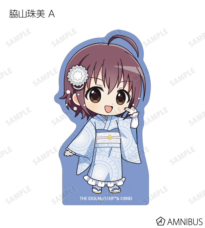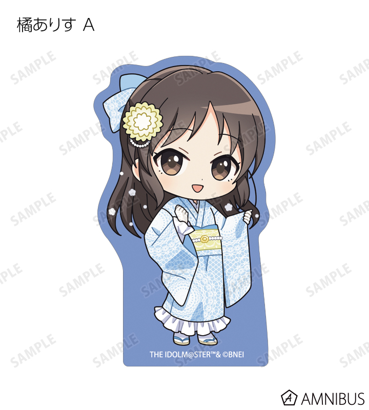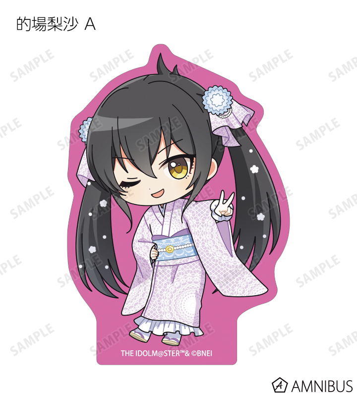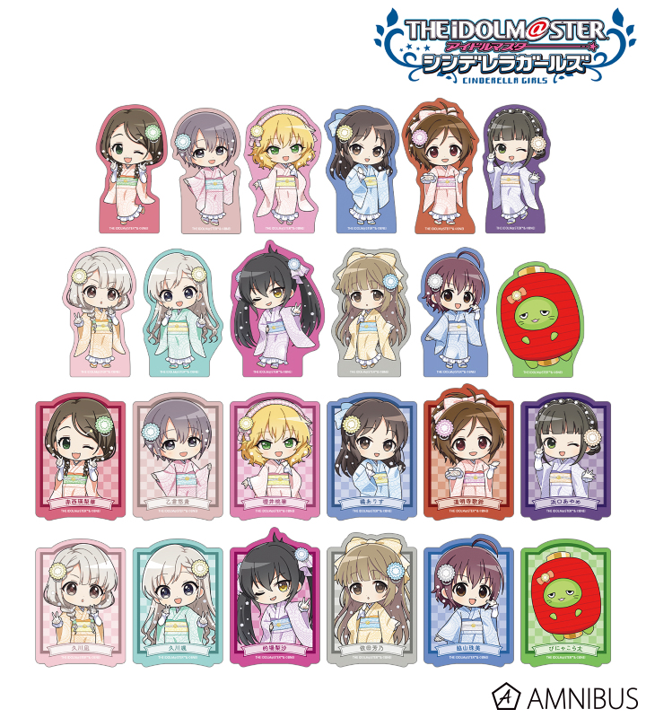 赤西瑛梨華、乙倉悠貴、櫻井桃華、橘ありす、道明寺歌鈴、浜口あやめ、久川凪、久川颯、的場梨沙、依田芳乃、脇山珠美、ぴにゃこら太の描き起こしちびキャライラストをメインにデザインし、ダイカットのステッカーに仕上げました。