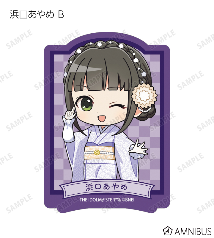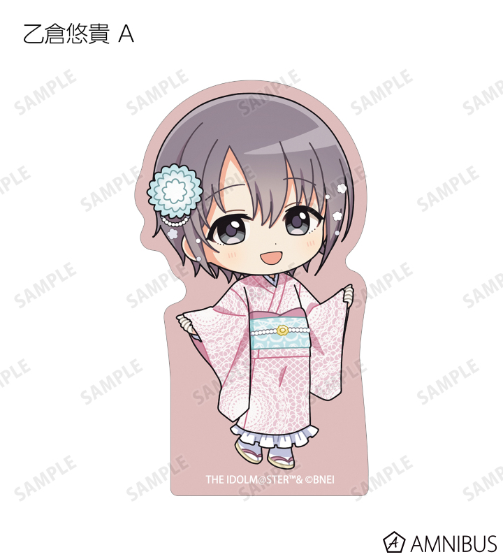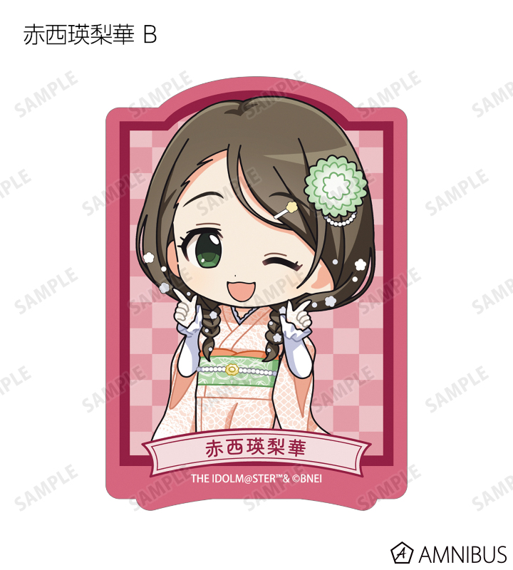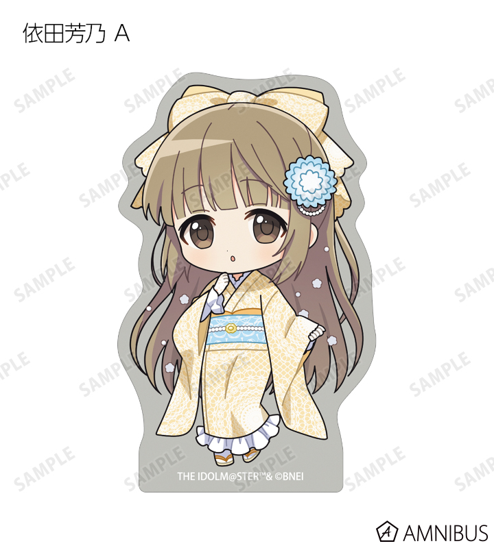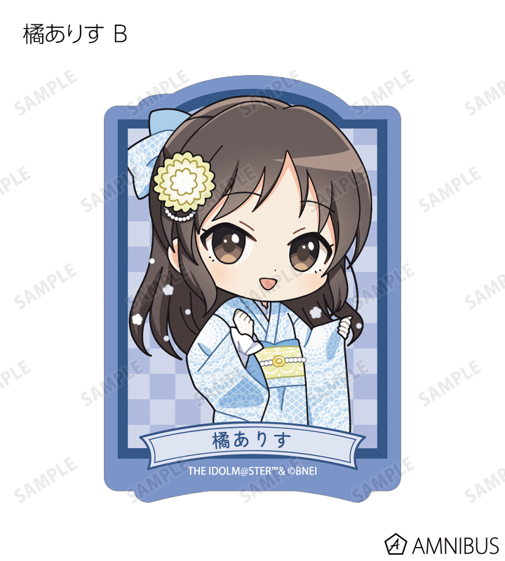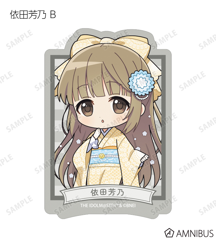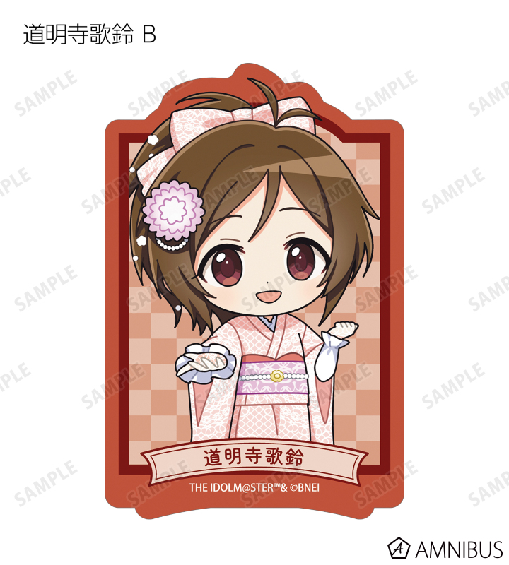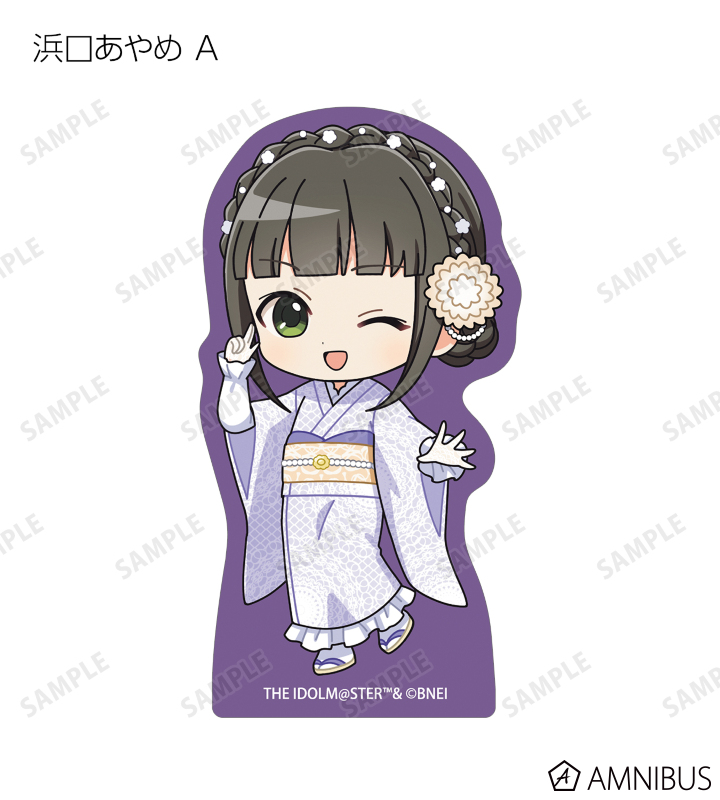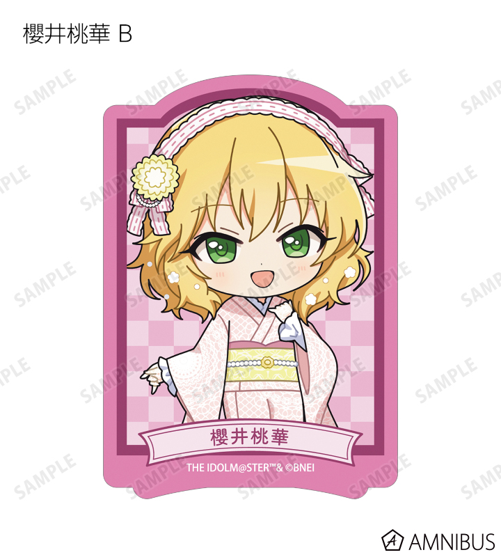 赤西瑛梨華、乙倉悠貴、櫻井桃華、橘ありす、道明寺歌鈴、浜口あやめ、久川凪、久川颯、的場梨沙、依田芳乃、脇山珠美、ぴにゃこら太の描き起こしちびキャライラストをメインにデザインし、ダイカットのステッカーに仕上げました。
