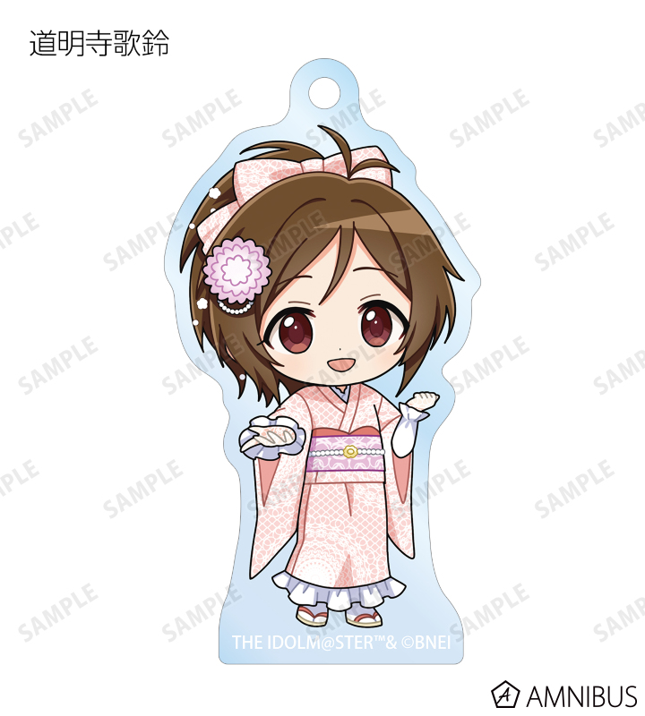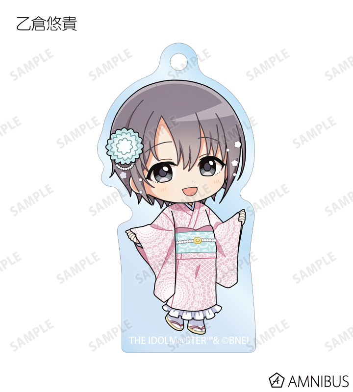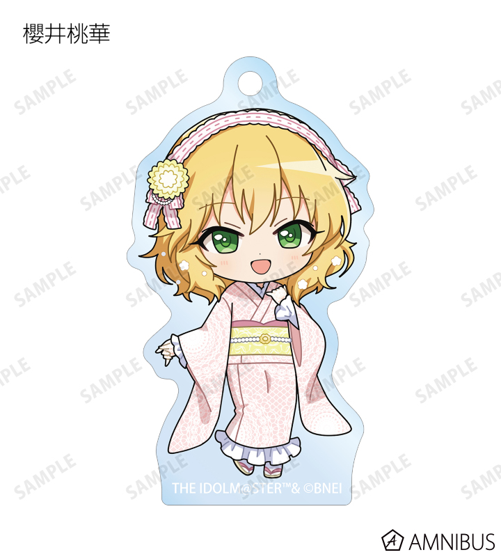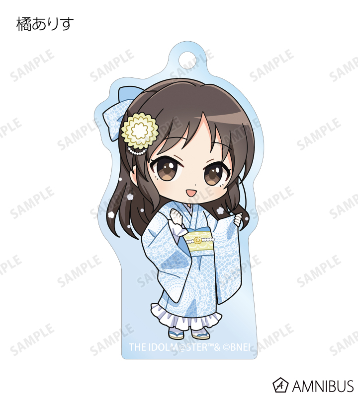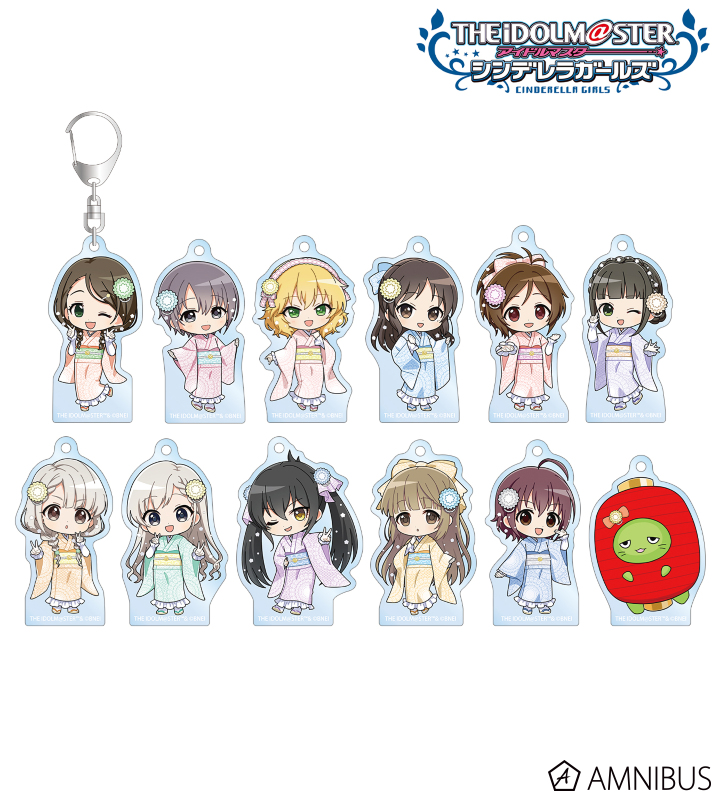 赤西瑛梨華、乙倉悠貴、櫻井桃華、橘ありす、道明寺歌鈴、浜口あやめ、久川凪、久川颯、的場梨沙、依田芳乃、脇山珠美、ぴにゃこら太の描き起こしちびキャライラストをメインにデザインし、アクリルキーホルダーに仕上げました。