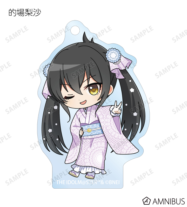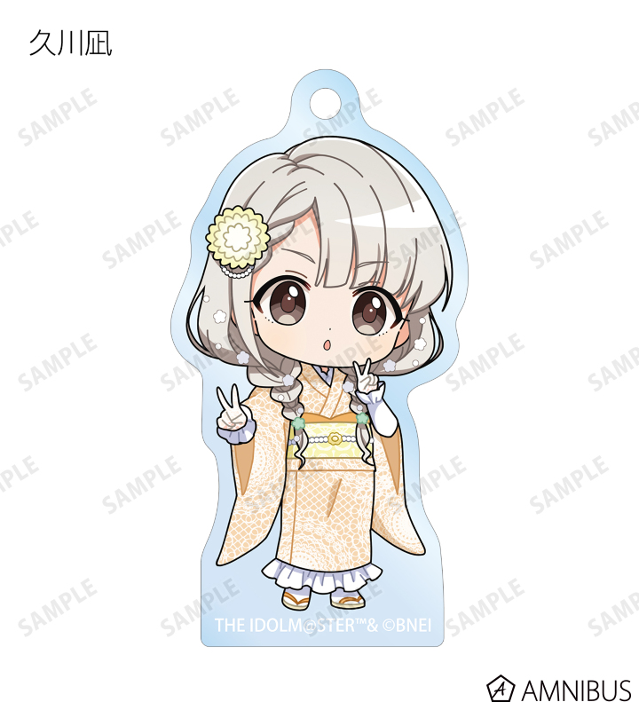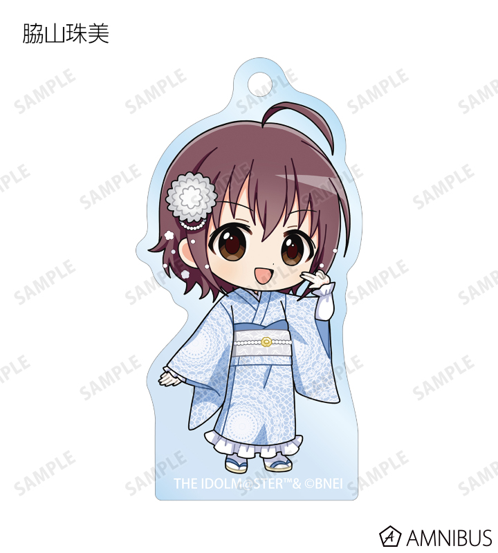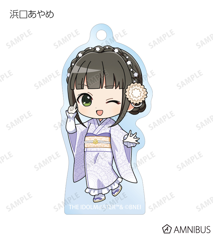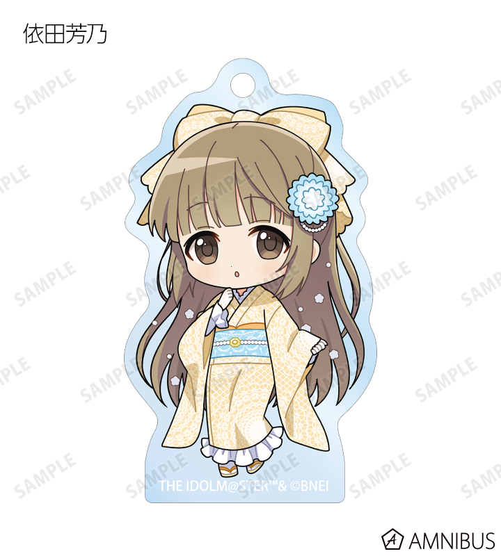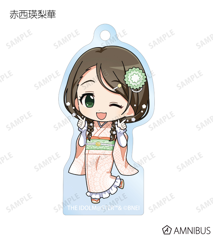 赤西瑛梨華、乙倉悠貴、櫻井桃華、橘ありす、道明寺歌鈴、浜口あやめ、久川凪、久川颯、的場梨沙、依田芳乃、脇山珠美、ぴにゃこら太の描き起こしちびキャライラストをメインにデザインし、アクリルキーホルダーに仕上げました。