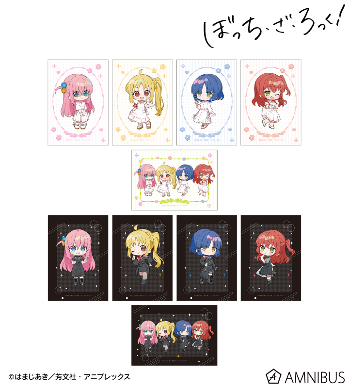 アニメ「ぼっち・ざ・ろっく!」×「上倉エク」のコラボレーションアイテム「上倉エクさんイラスト 白いワンピースver.&黒いワンピースver. トレーディングブロマイド」の登場です。
