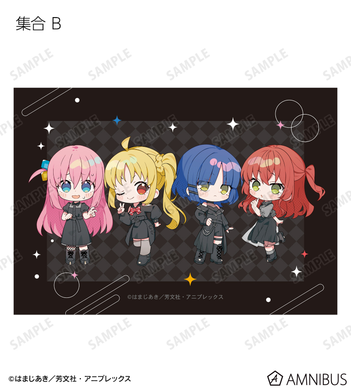 上倉エクさん描き起こしイラストの後藤ひとり、伊地知虹夏、山田リョウ、喜多郁代をブロマイドに仕上げました。