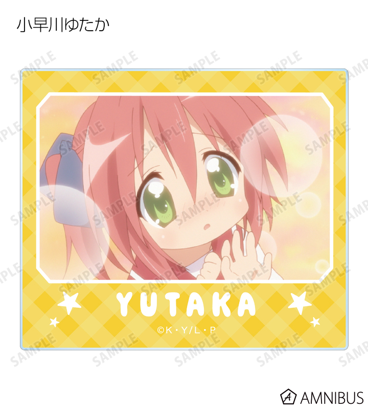 泉こなた、柊つかさ、柊かがみ、高良みゆき、小早川ゆたか、岩崎みなみの印象的なシーンをアクリルカードに仕上げました。