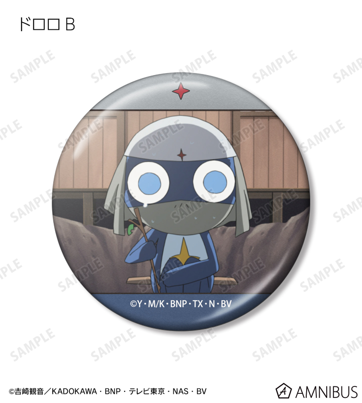 ドロロの印象的なシーンをメタリック仕様の缶バッジに仕上げました。