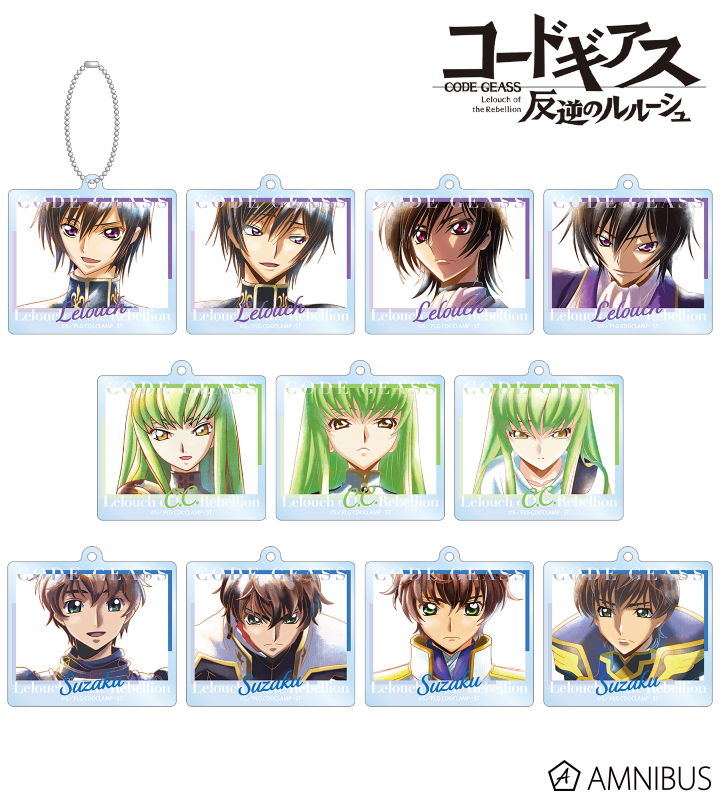ルルーシュ、C.C.、スザクのイラストを新たなタッチで魅力的に表現し、アクリルキーホルダーに仕上げました。