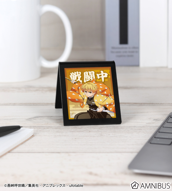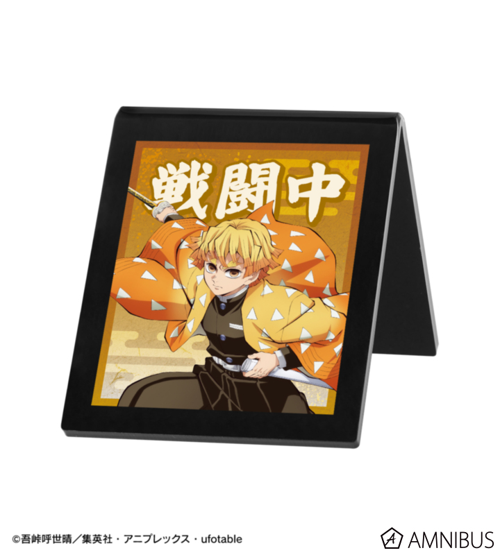 我妻善逸のイラストをデスクや棚に立てて飾れる自立型のアクリルサインプレートに仕上げました。