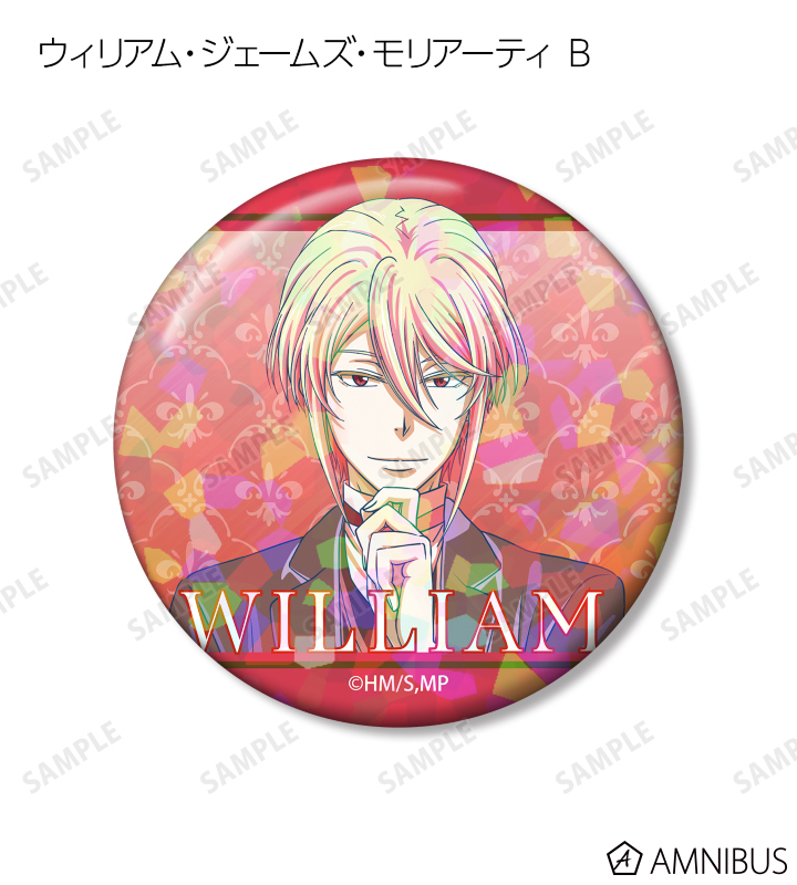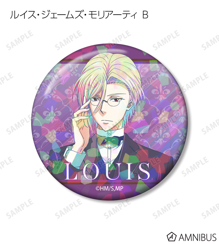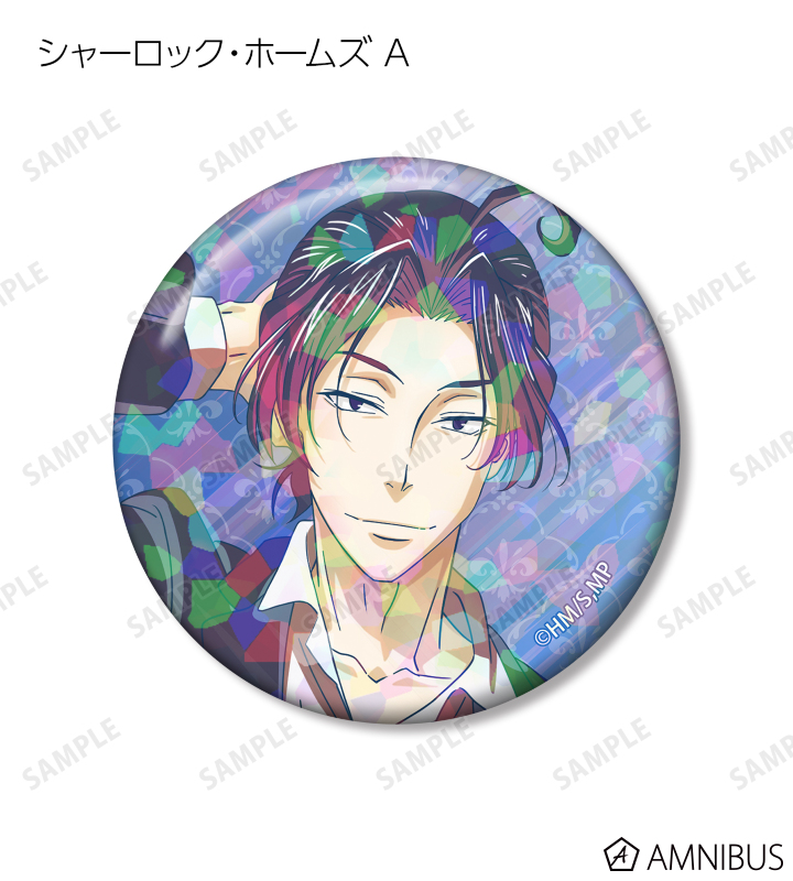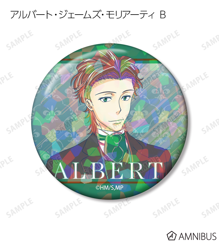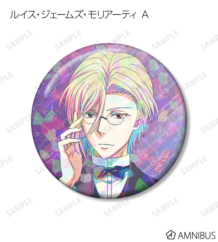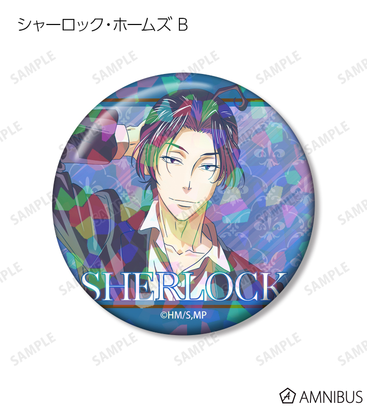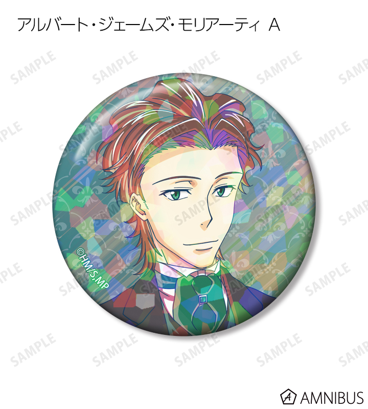 ウィリアム・ジェームズ・モリアーティ、アルバート・ジェームズ・モリアーティ、ルイス・ジェームズ・モリアーティ、シャーロック・ホームズのイラストを新たなタッチで魅力的に表現し、ホログラム加工を施した缶バッジに仕上げました。