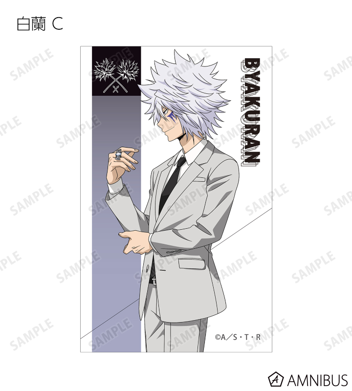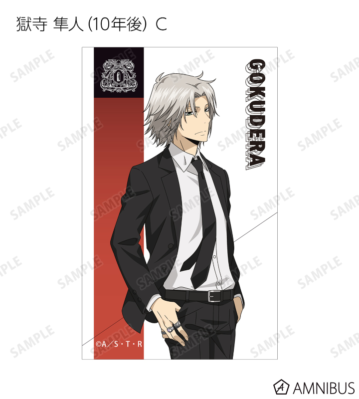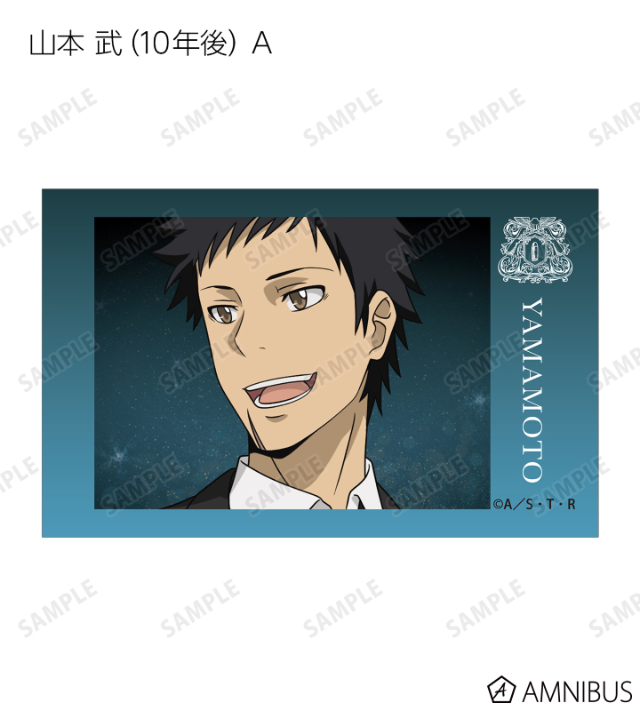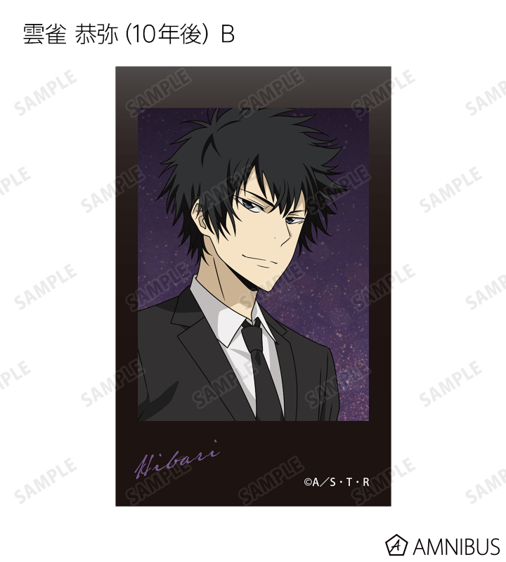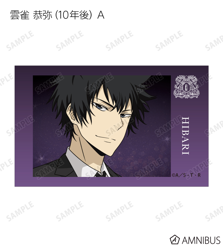 リボーン、沢田 綱吉、獄寺 隼人(10年後)、山本 武(10年後)、雲雀 恭弥(10年後)、六道 骸(10年後)、XANXUS(10年後)、スペルビ・スクアーロ(10年後)、ベルフェゴール(10年後)、フラン、白蘭の描き下ろしイラストをイラストカードに仕上げました。