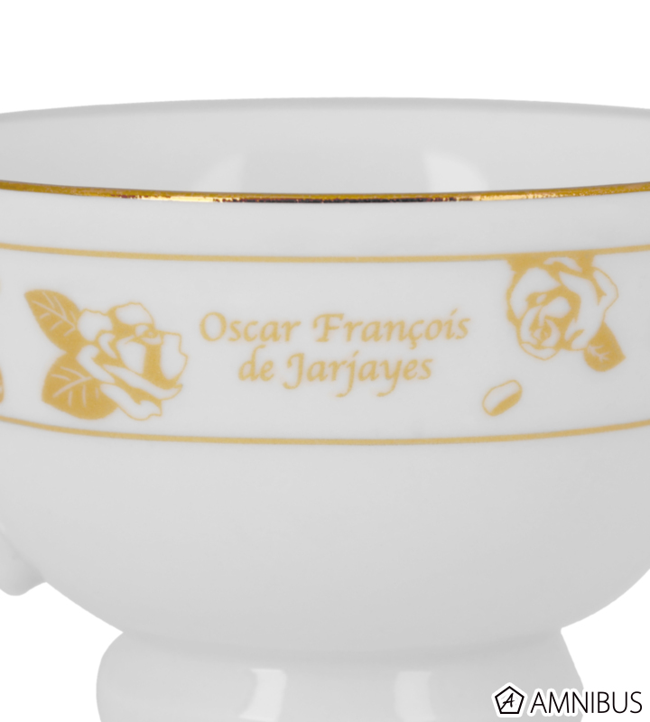 オスカルのイラストをボタニカルデザインに落とし込んで繊細なタッチで新たに描き起こし、カップ&ソーサーに仕上げました。