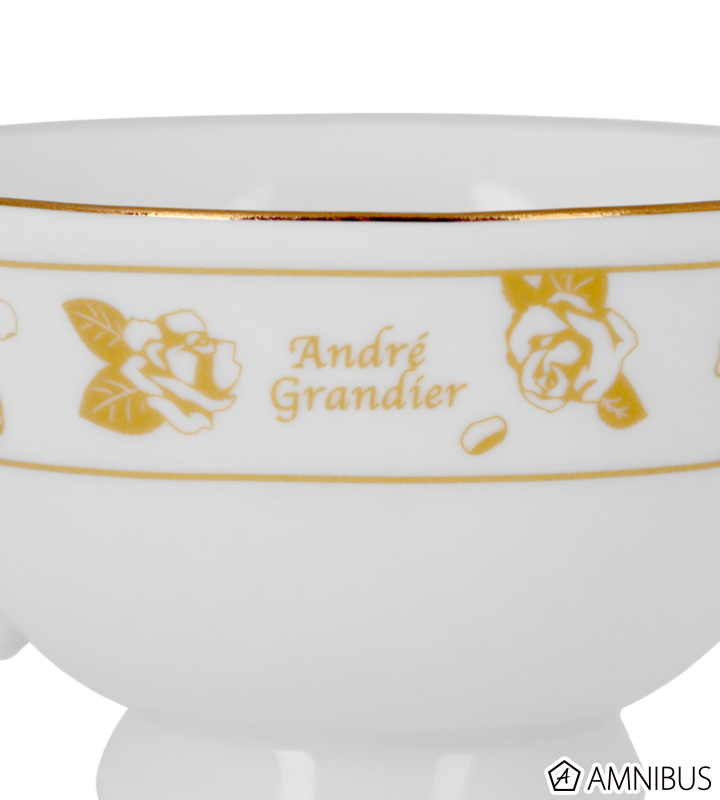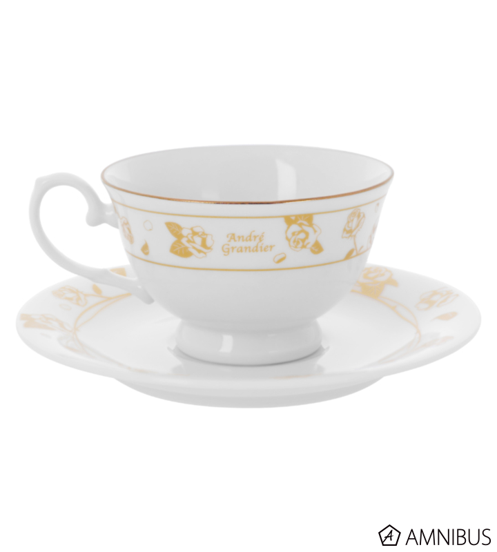 アンドレのイラストをボタニカルデザインに落とし込んで繊細なタッチで新たに描き起こし、カップ&ソーサーに仕上げました。