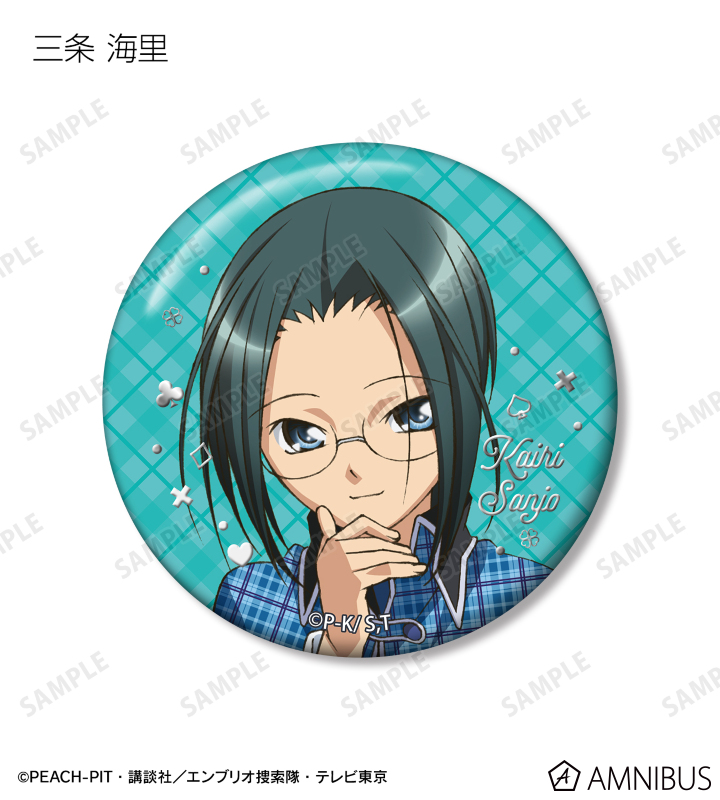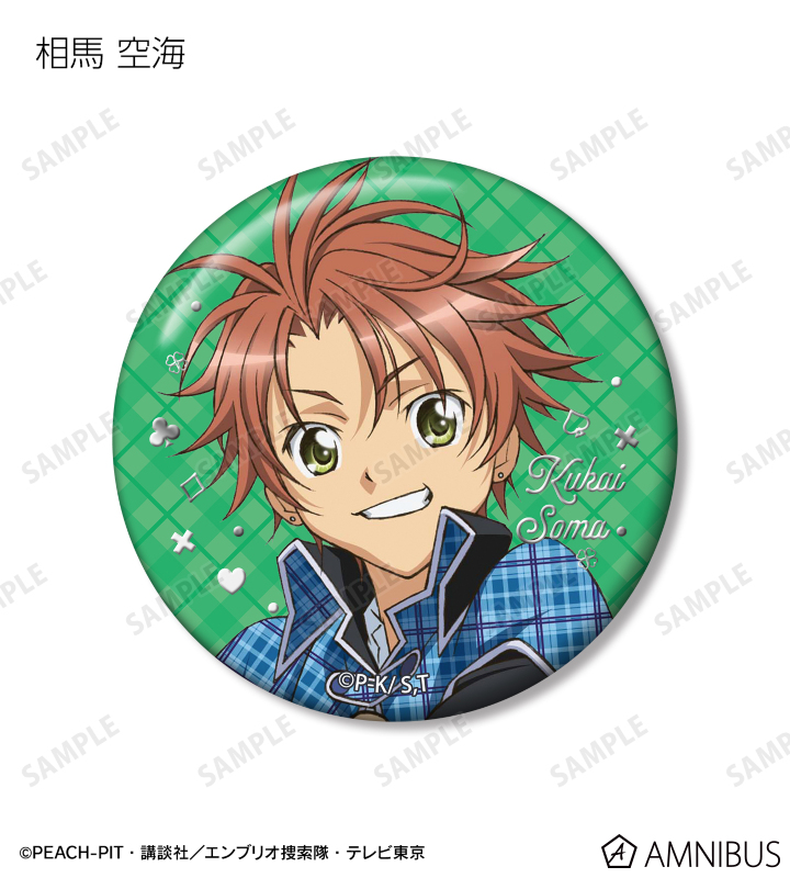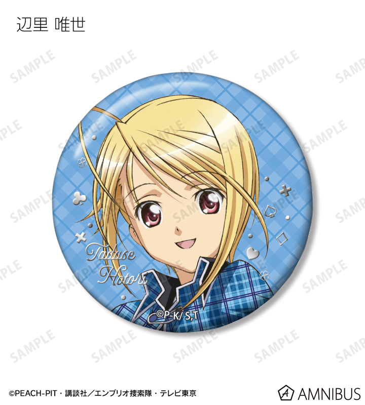 日奈森 あむ、月詠 イクト、辺里 唯世、藤咲 なでしこ、相馬 空海、結木 やや、真城 りま、三条 海里、藤咲 なぎひこ、ほしな 歌唄のイラストをジュエリー加工の缶バッジに仕上げました。