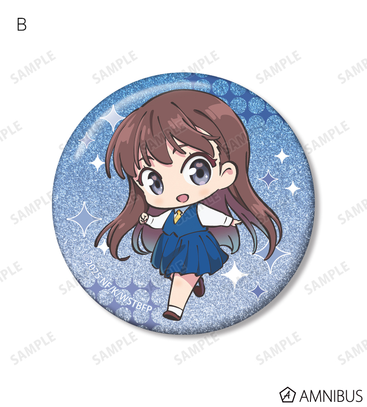 御倉 深冬のイラスト、ちびキャライラスト、印象的なシーンをグリッター加工を施した缶バッジ3個セットに仕上げました。