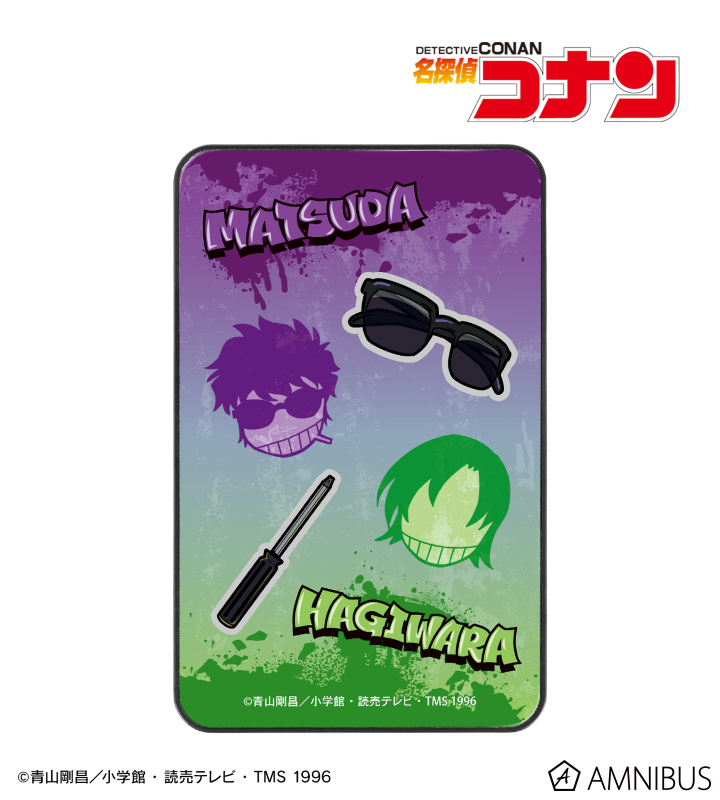 松田陣平、萩原研二の名前とサングラス、ドライバーの3点をグラフィティモチーフとして描き起こし、キャラクターアイコンと組み合わせてモバイルバッテリーに仕上げました。