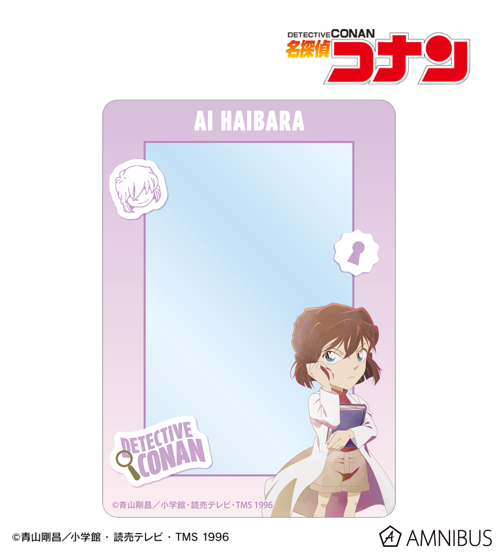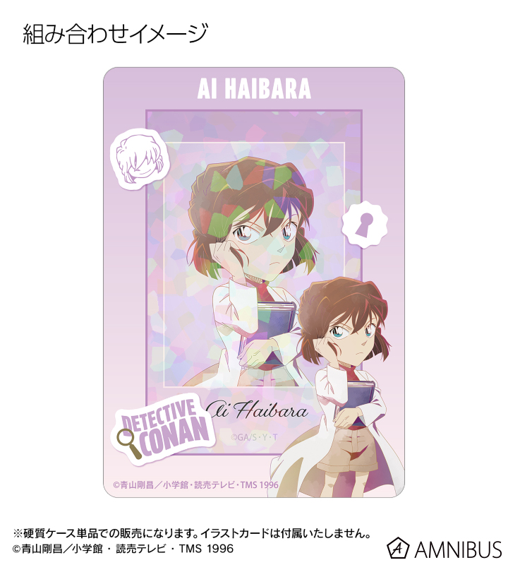 灰原哀のイラストを新たなタッチで魅力的に表現し、キャラクターの名前、作品名、キャラクターアイコン、鍵穴の描き起こしモチーフと組み合わせてケースに仕上げました。