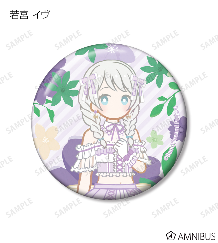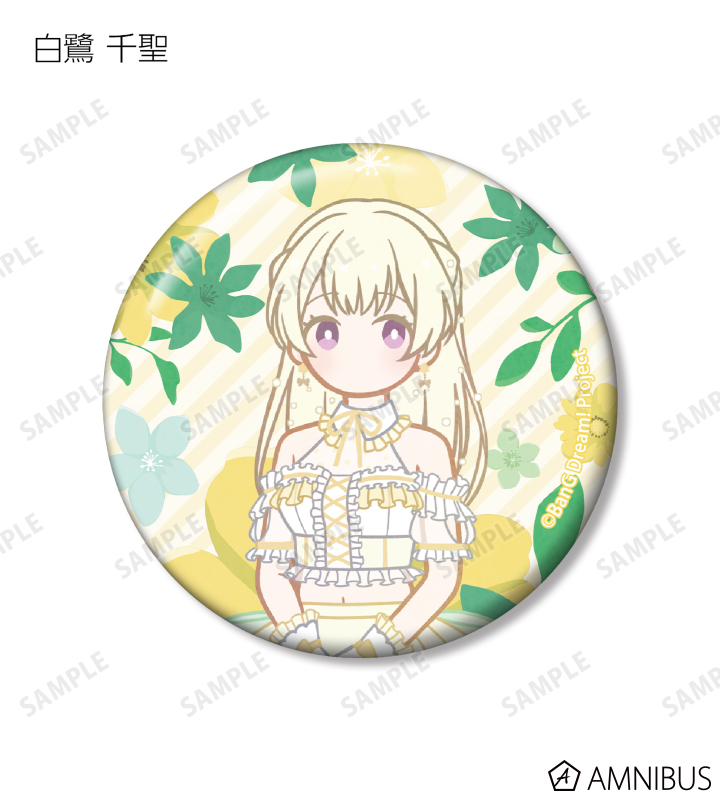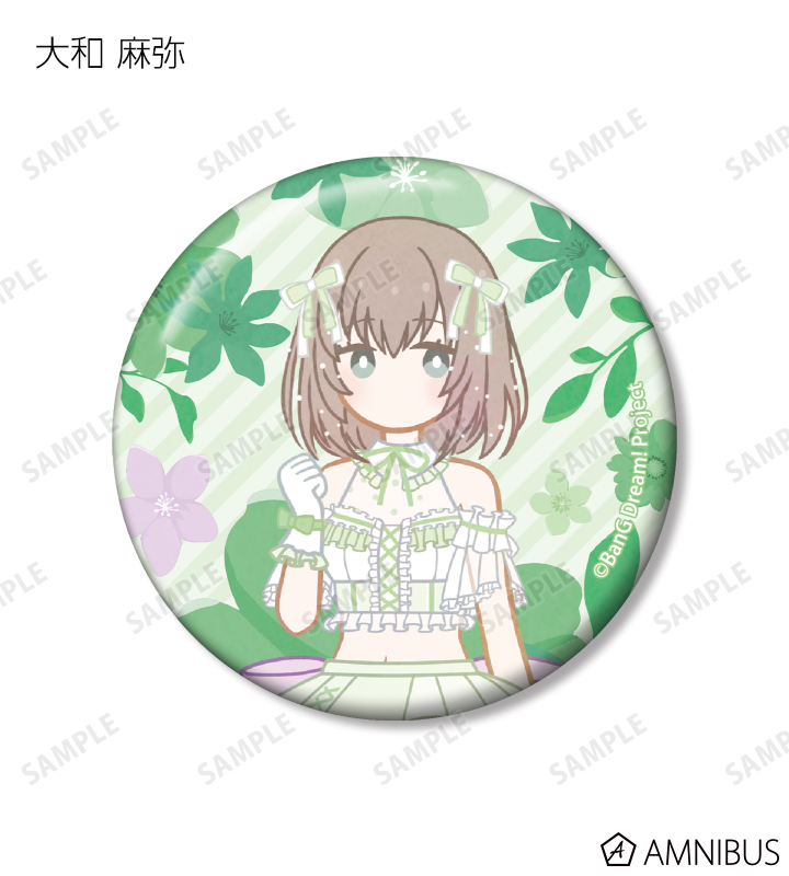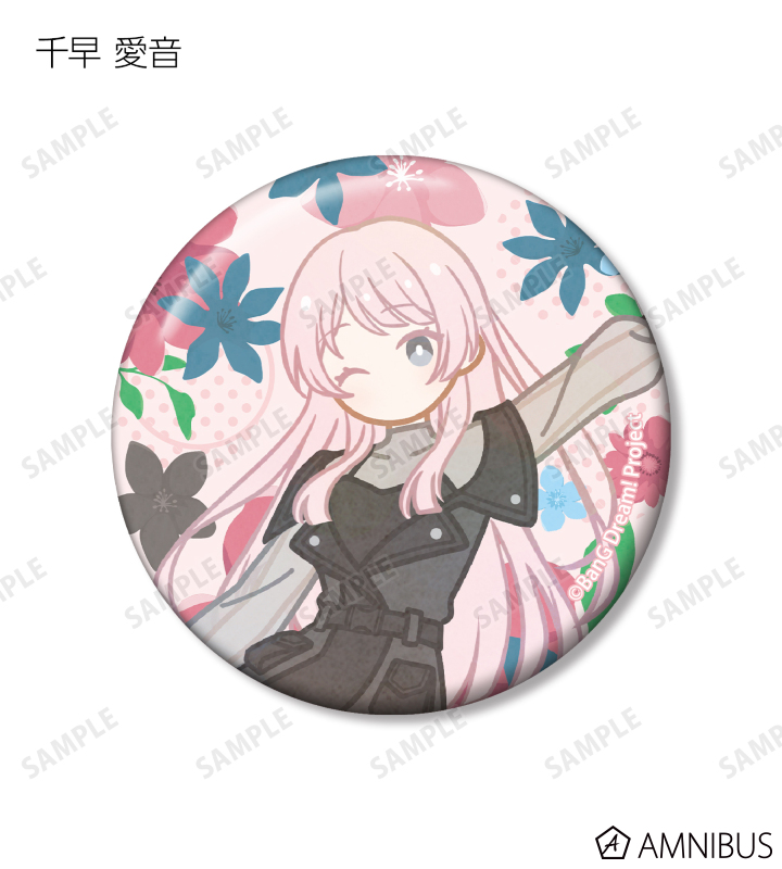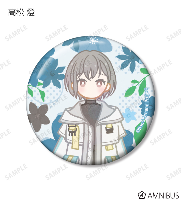 丸山 彩、氷川 日菜、白鷺 千聖、大和 麻弥、若宮 イヴ、高松 燈、千早 愛音、要 楽奈、長崎 そよ、椎名 立希のイラストをボタニカルデザインに落とし込んで繊細なタッチで新たに描き起こし、缶バッジに仕上げました。