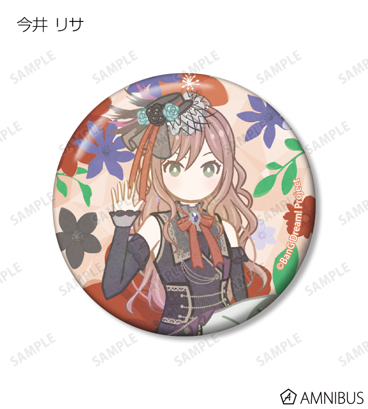 湊 友希那、氷川 紗夜、今井 リサ、宇田川 あこ、白金 燐子、レイヤ、ロック、マスキング、パレオ、チュチュのイラストをボタニカルデザインに落とし込んで繊細なタッチで新たに描き起こし、缶バッジに仕上げました。