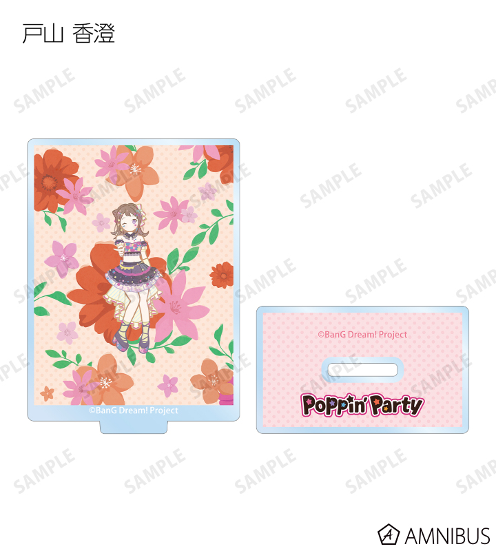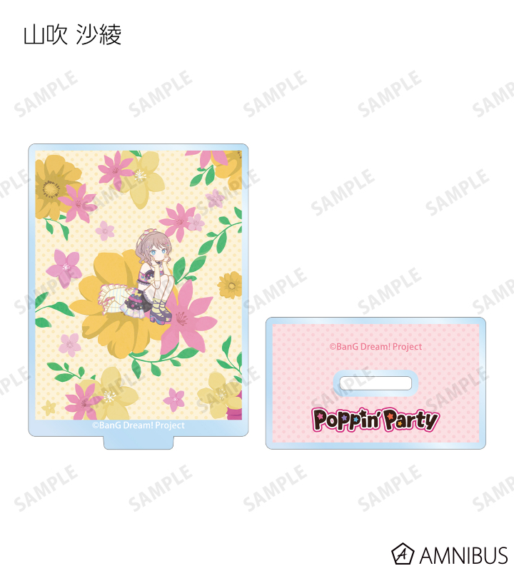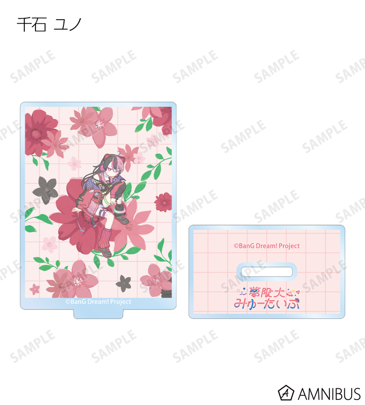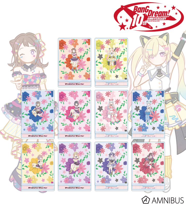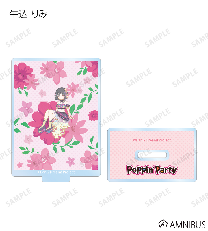 戸山 香澄、花園 たえ、牛込 りみ、山吹 沙綾、市ヶ谷 有咲、仲町 あられ、宮永 ののか、峰月 律、藤 都子、千石 ユノのイラストをボタニカルデザインに落とし込んで繊細なタッチで新たに描き起こし、アクリルスタンドに仕上げました。